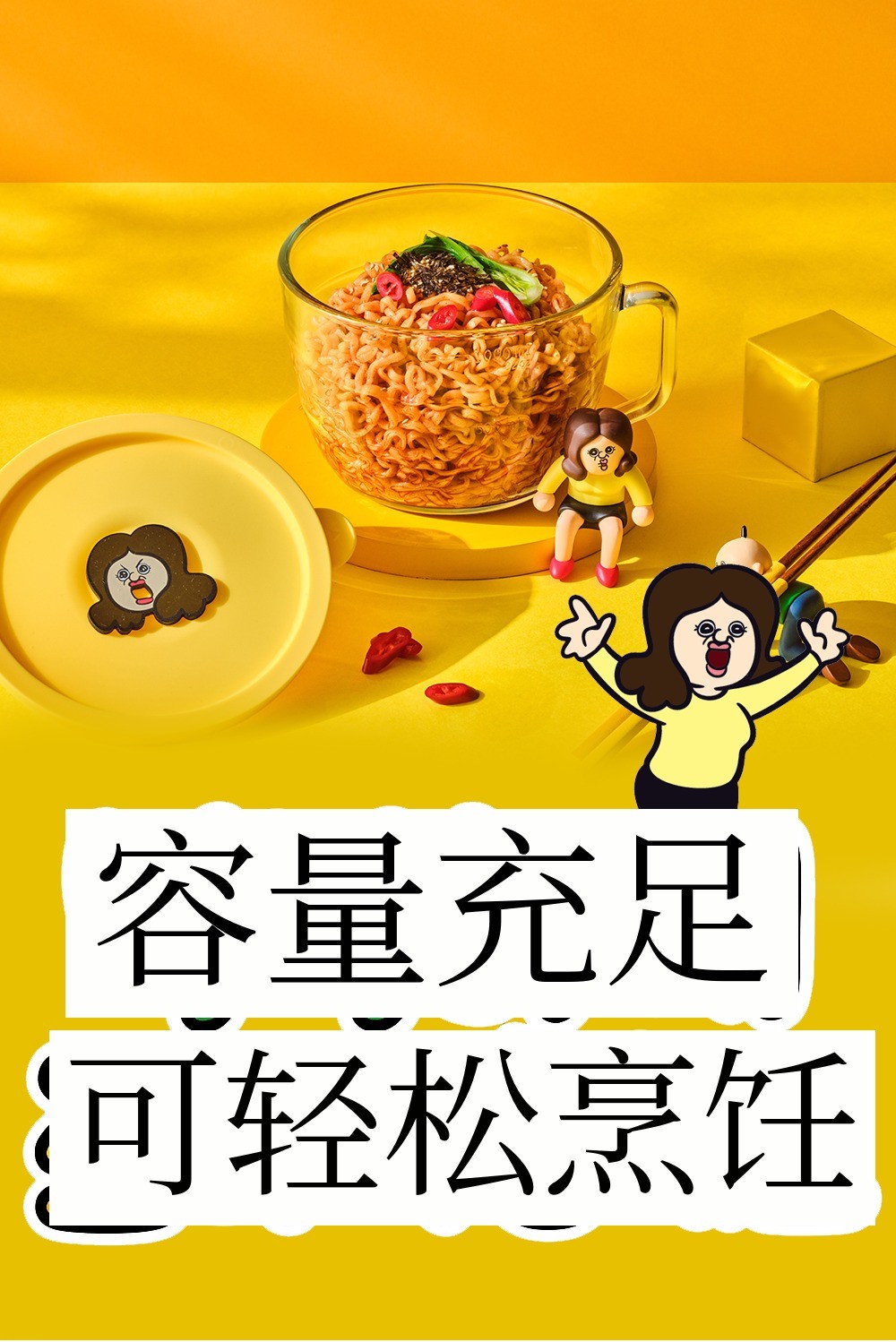 拥有适合同时放入水和方便面煮沸的深度, 非常实用。