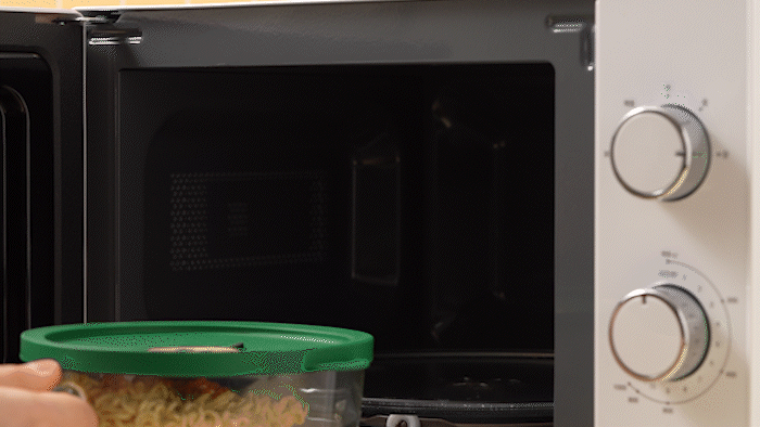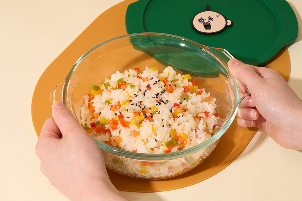 即使完全盖上硅胶盖放入微波炉加热也没问题!它能调节内部压力,防止食物溢出或爆裂。