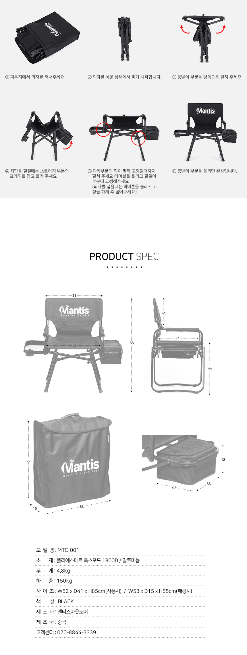 - 맨티스 캠핑 의자는 캠핑, 낚시, 피크닉에 최적화된 고기능 의자입니다.