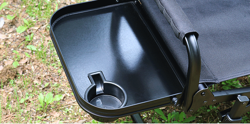 36 x 24 크기의 접이식 사이드 테이블이 장착되어 있습니다. 테이블 둘레가 오목한 형태로 물건을 올려놓았을 때 떨어질 염려를 줄였습니다. 직경 8cm 깊이 4cm의 컵홀더가 있어서 머그컵이나 텀블러를 올려 놓을 수 있습니다.