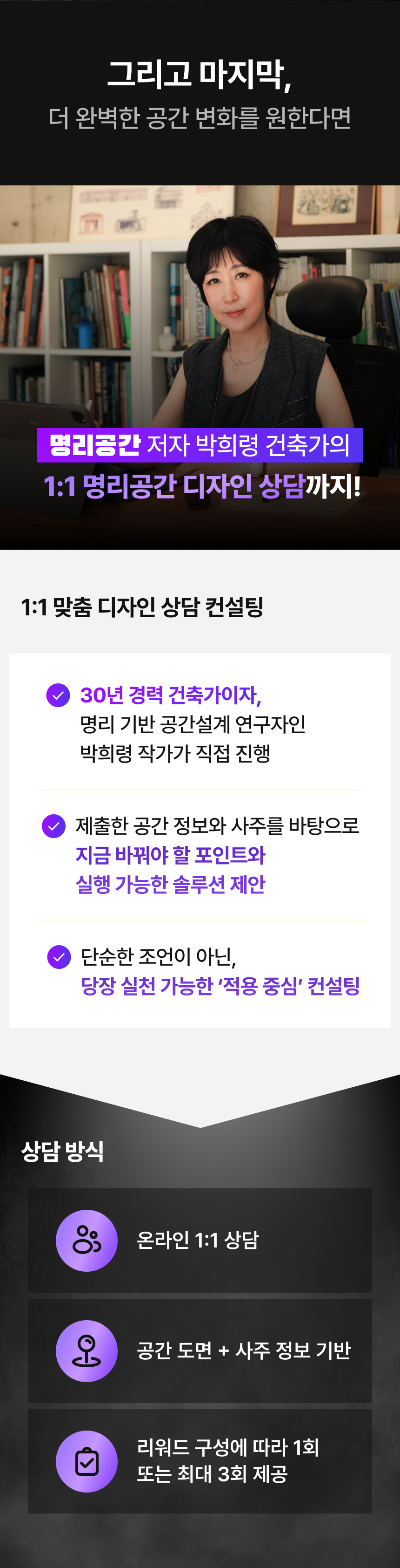 1. 🏠 命理定制空间设计 - 30年建筑师提供个性化空间方案 2. 🌟 改善气运流动 - 定制家具布局与空间结构优化气场 3. 🎁 独家完整设计套餐 - 包含书籍、讲座、图纸及专家咨询