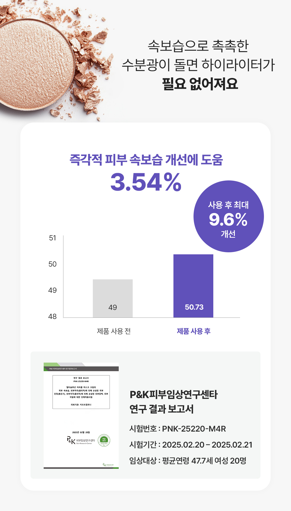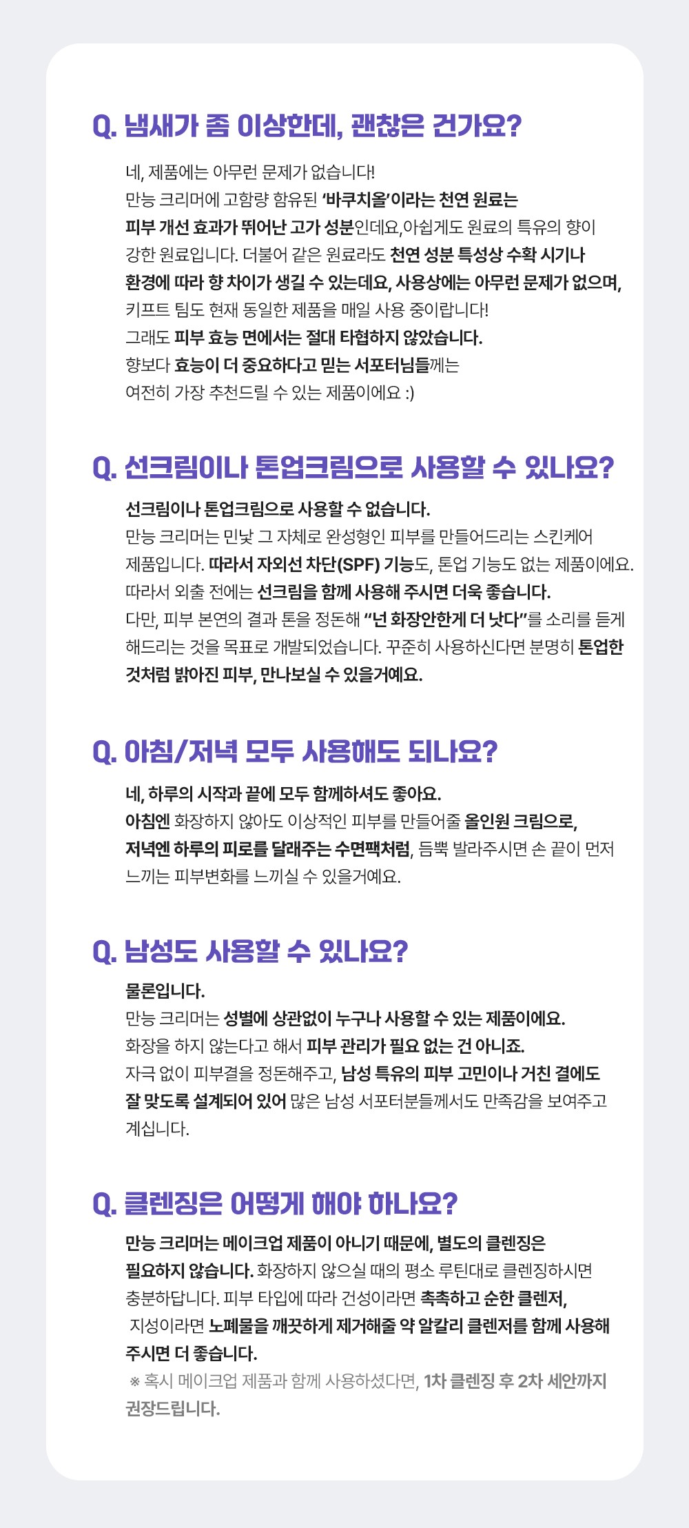 | ๐ธ ๋ฏผ๊ฐ์ฑ | ์ฌ์ฉํ๋ ์ ํ์ ์๋์ ์์ด ํผ๋ถ ์ ์ ํ, ์์ ์กฐ๊ธ์ฉ ๋๋ ค ์ฌ์ฉํด๋ณด์ธ์. |