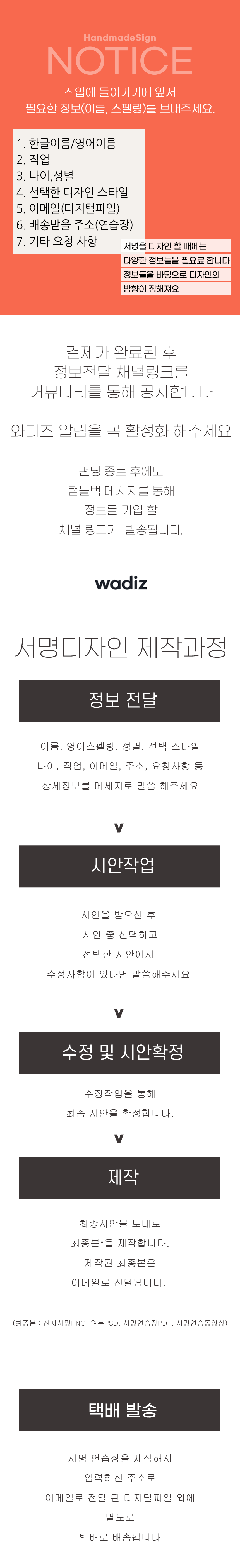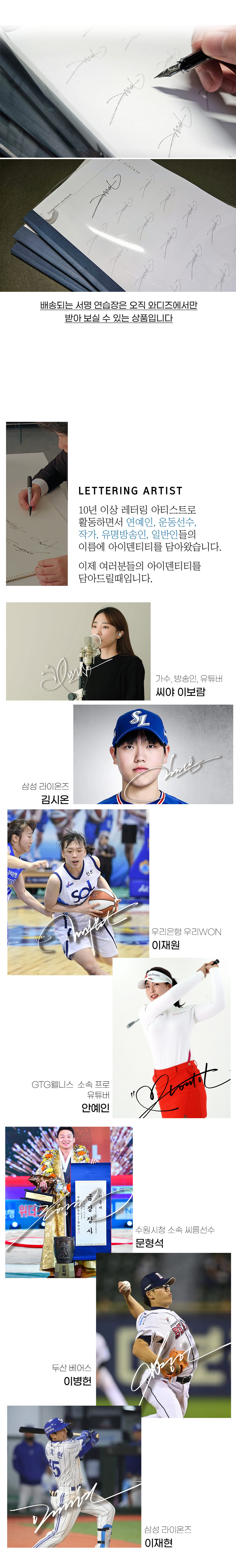 서명연습장(배송)은 최종시안으로 만들어진 최종본 전달과 함께 발송될 예정입니다
