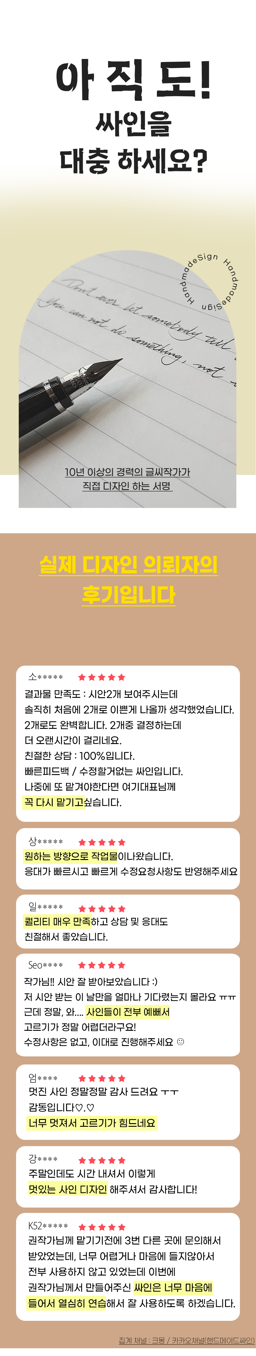 서명디자인은 단순한 서비스를 넘어, 일상의 작은 자신감을 선물하는 특별한 프로젝트입니다.