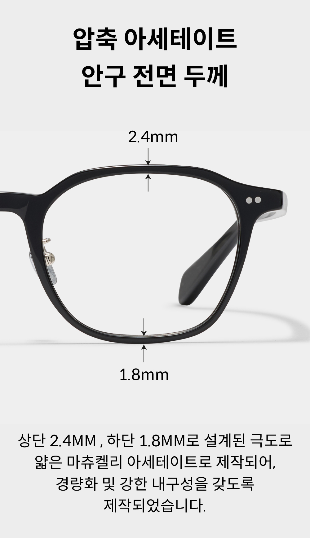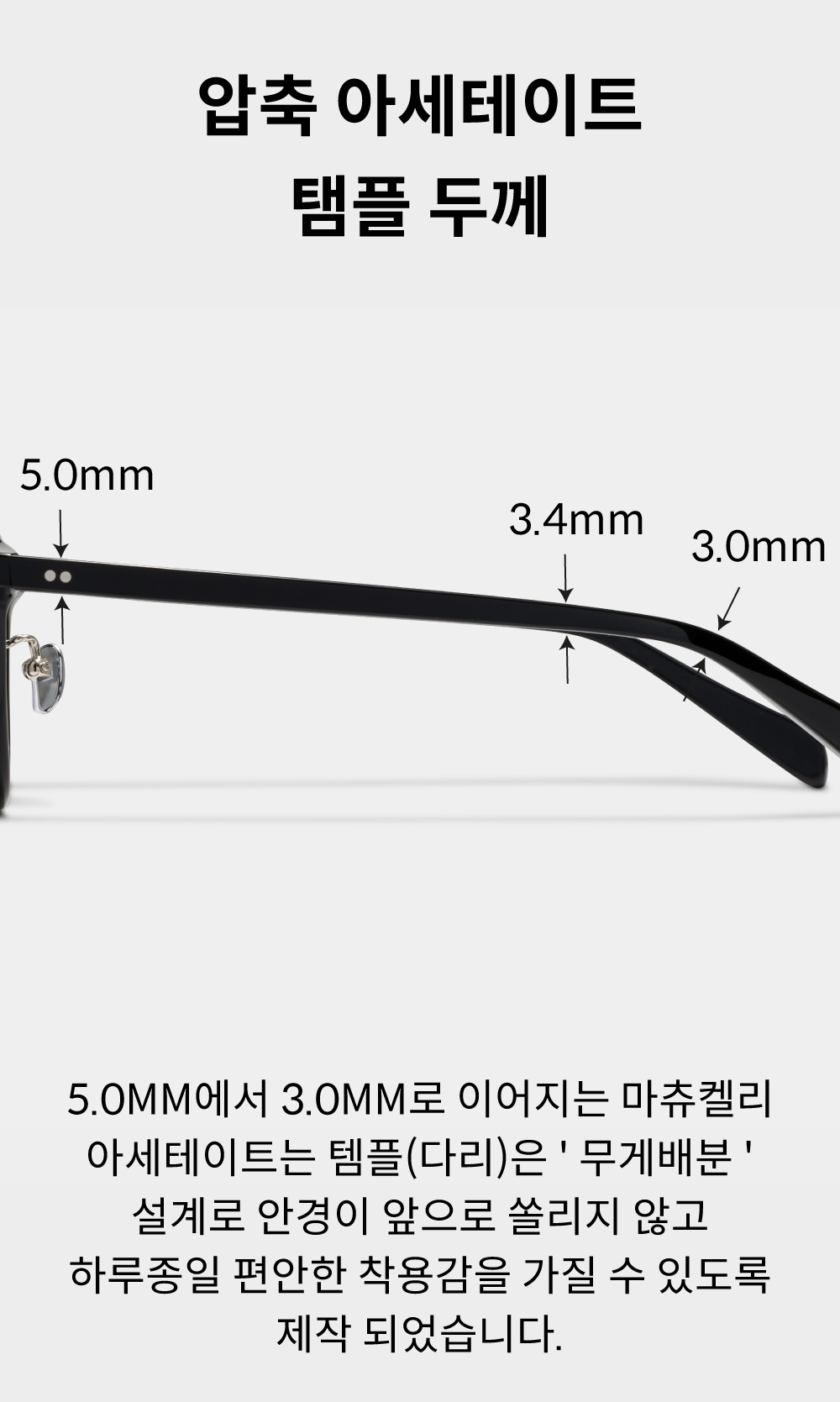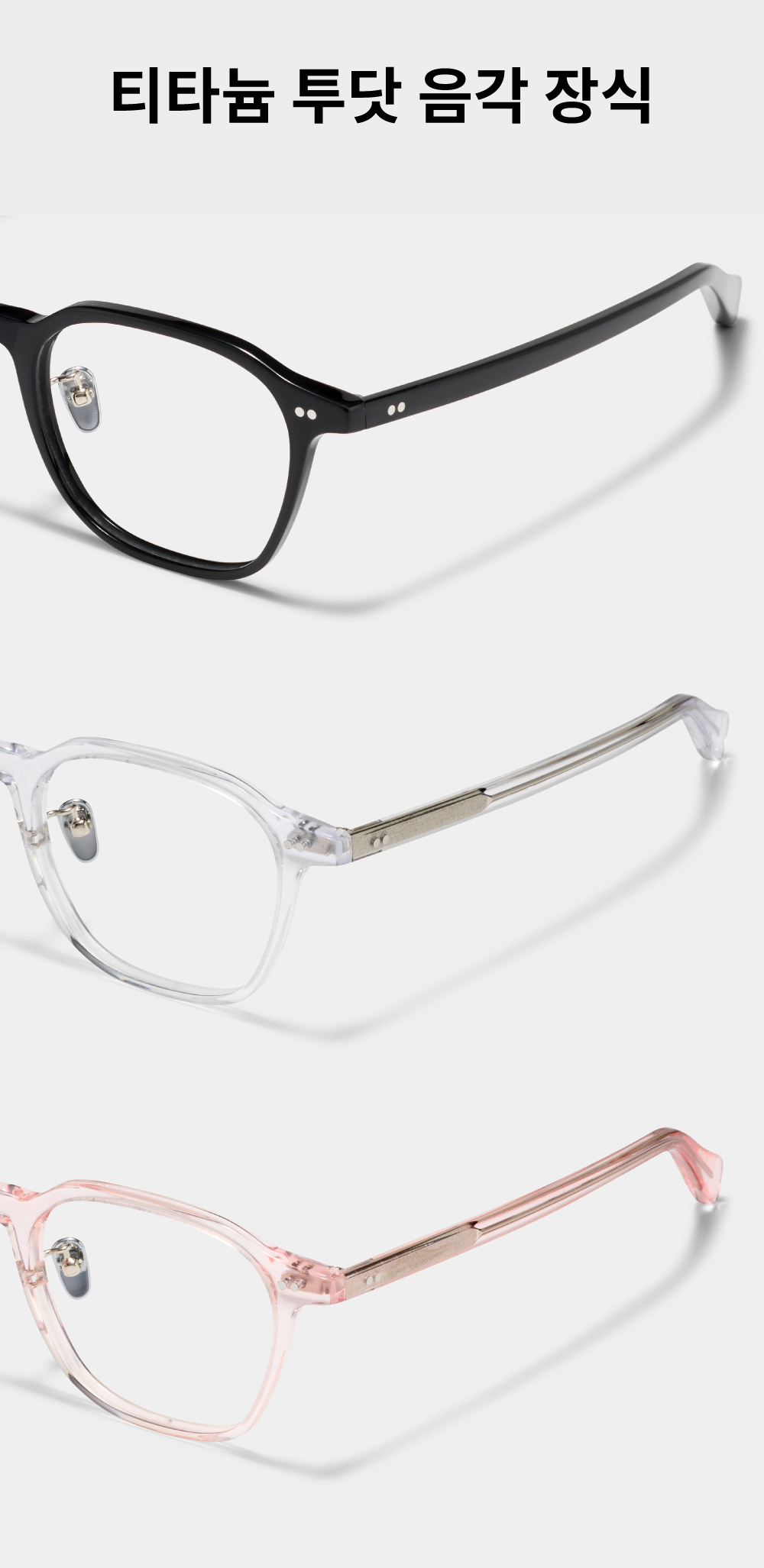 - 아세테이트 귀팁 사이에 먼지, 땀 및 액체류등 이물질이 들어가 변색 및 티타늄도금이 박리될수있으니 유의바랍니다.