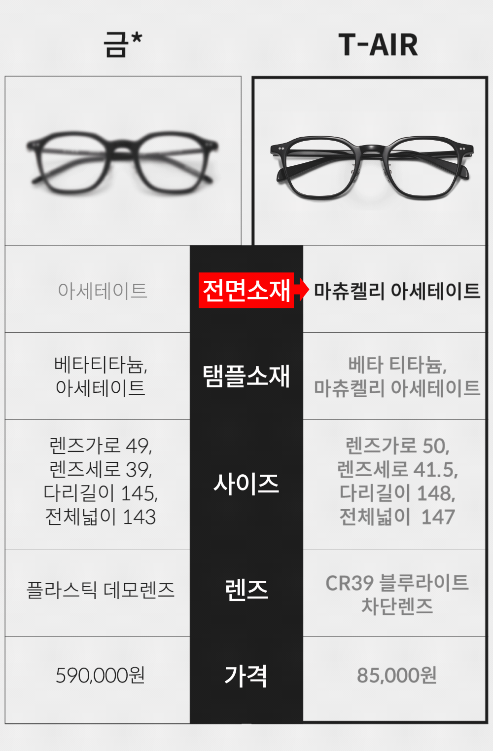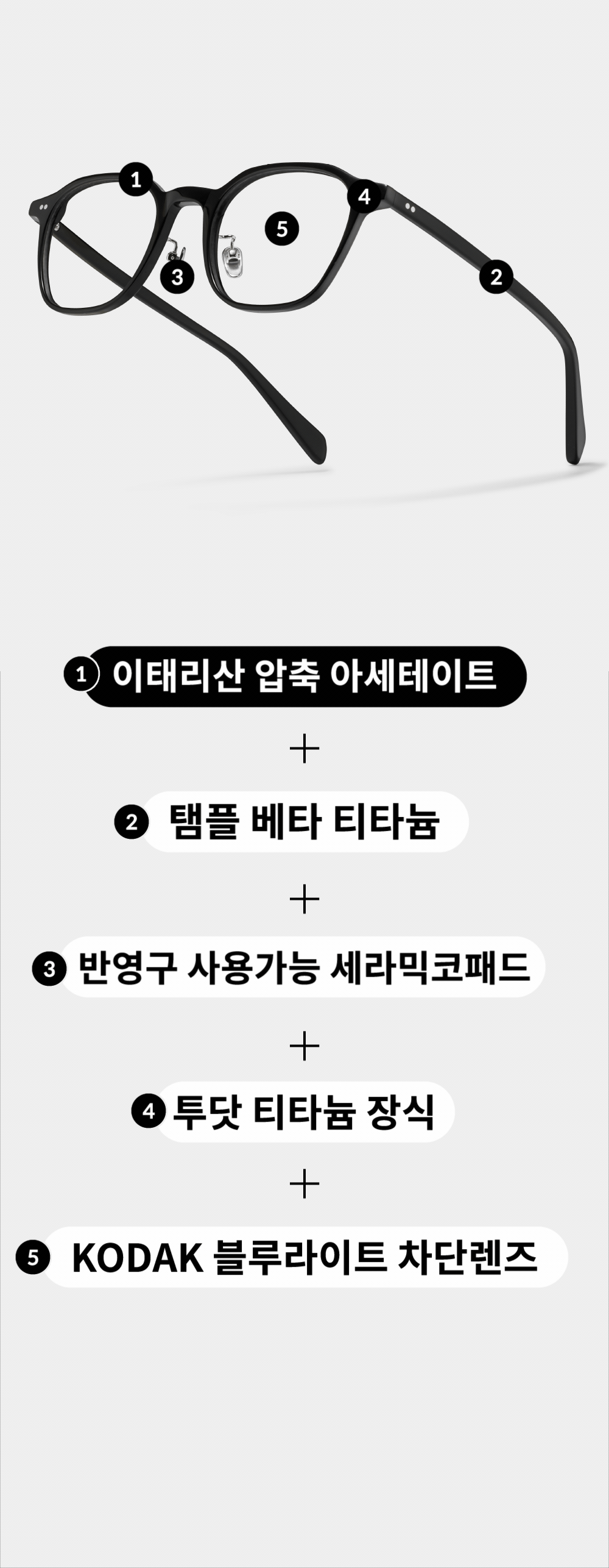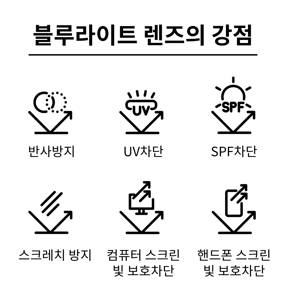 - 렌즈: CR-39 블루라이트차단 렌즈 ☑ 안전요건: 니켈용출량 0.5㎍/㎠/이하