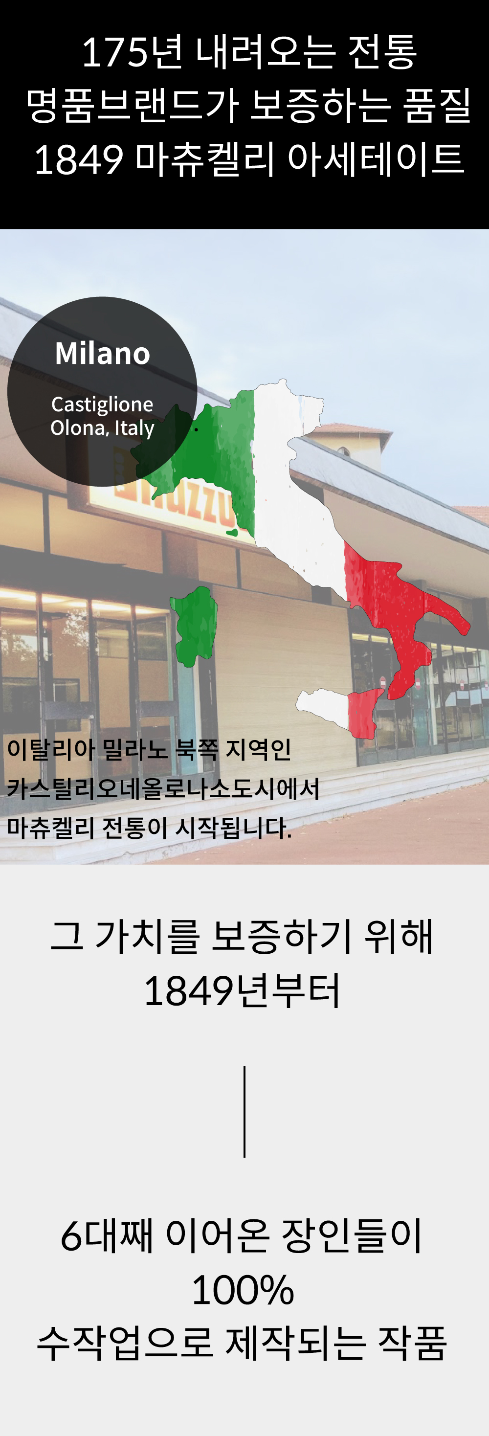 - 전면: 이태리산 1849 마츄켈리 아세테이트