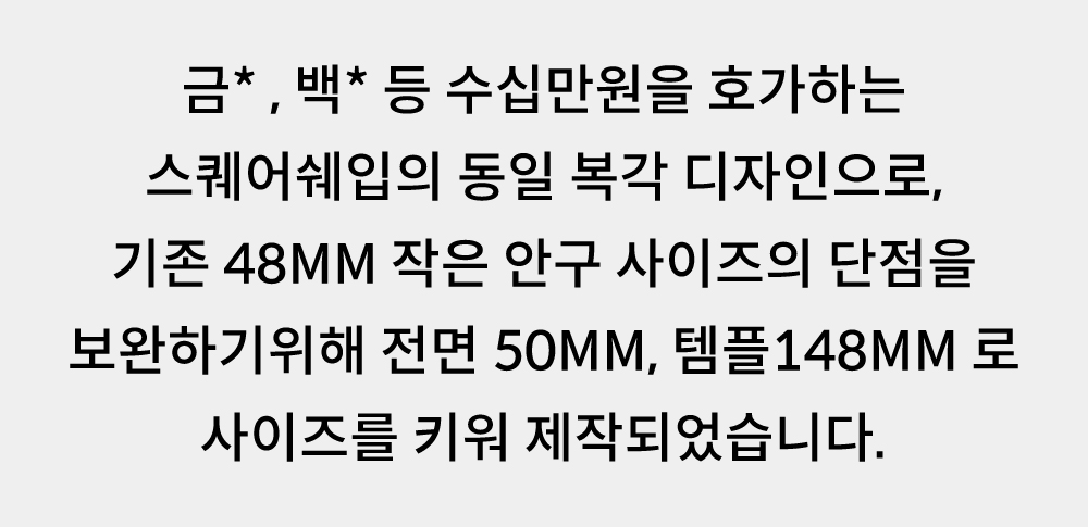 ⚠ 렌즈에 도수를 넣을수 있나요? : 네 가능합니다. 도수 렌즈를 교체하실경우 가까운 안경원에서 렌즈를 교체하시기 바랍니다.