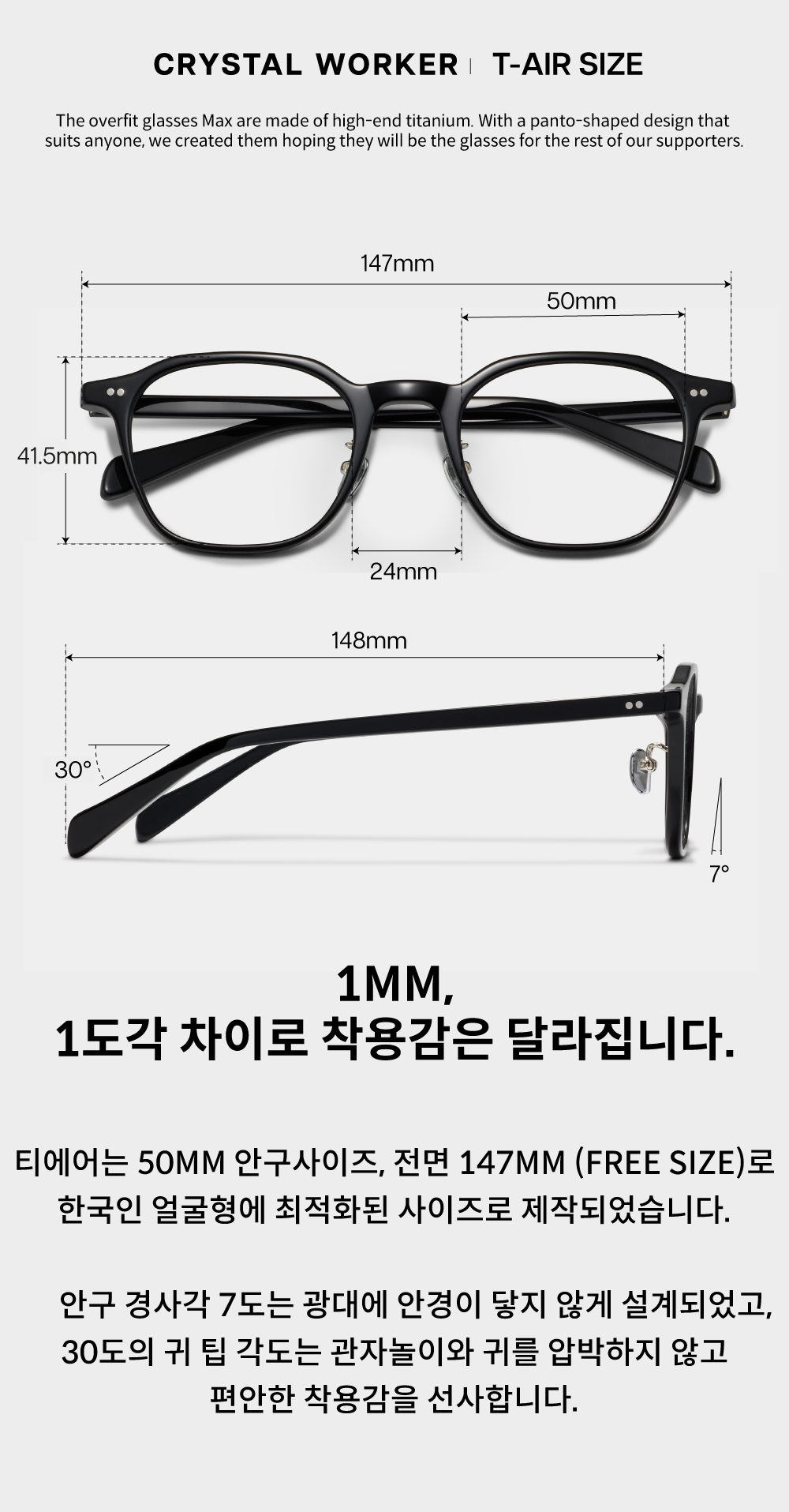 ⚠ 피팅없이 바로 써도 되나요? : '티에어' 는 테크닉피팅이 기본적으로 수작업으로 모두 진행하였습니다. 또한 셀프피팅이 가능하며, 정확한 피팅이 필요하시다면 전문 안경점의 도움을 받으시길 권장드립니다.