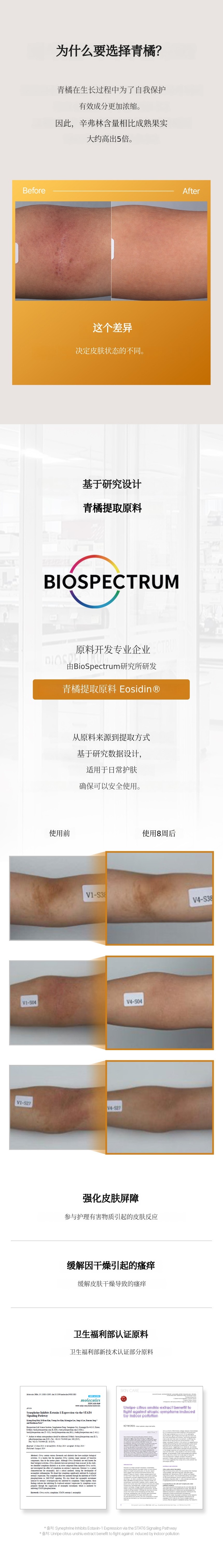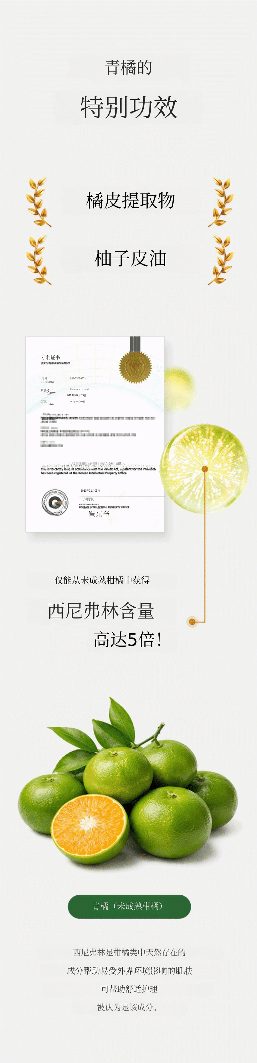 为了强化皮肤屏障,添加了青橘提取物、泛醇和6种神经酰胺。