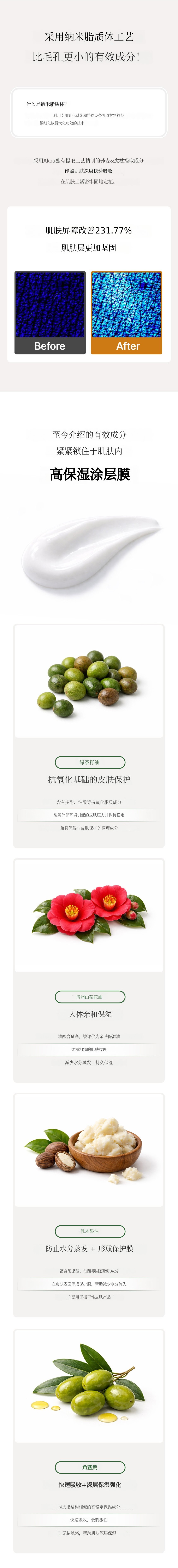 此外,还用乳木果油、角鲨烷、山茶籽油、绿茶籽油等植物来源的保湿成分,带来了深层保湿感。