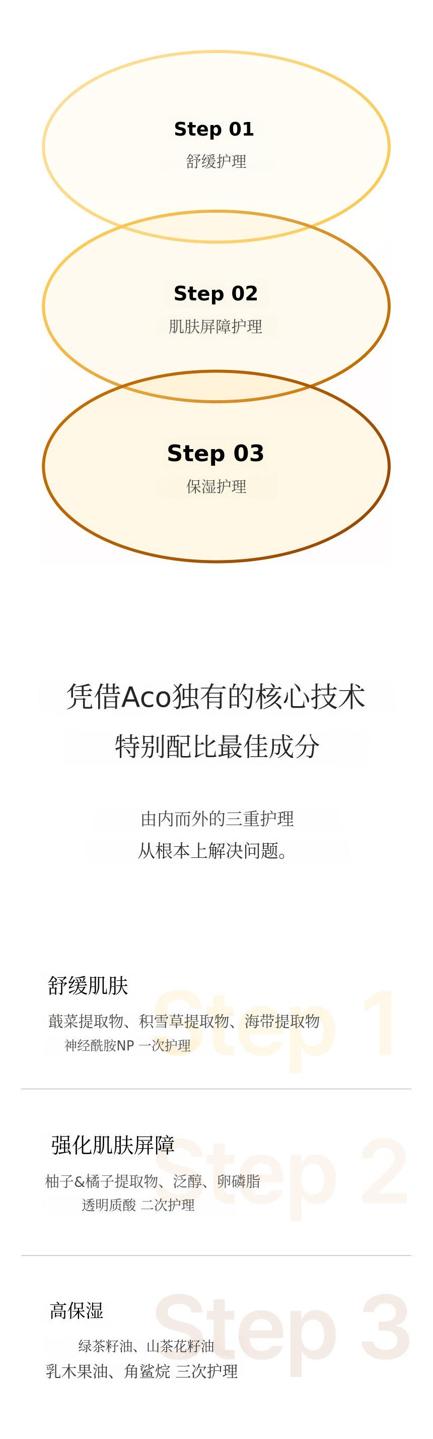 为了舒缓皮肤,添加了蕺菜提取物、积雪草提取物、海带提取物和透明质酸。