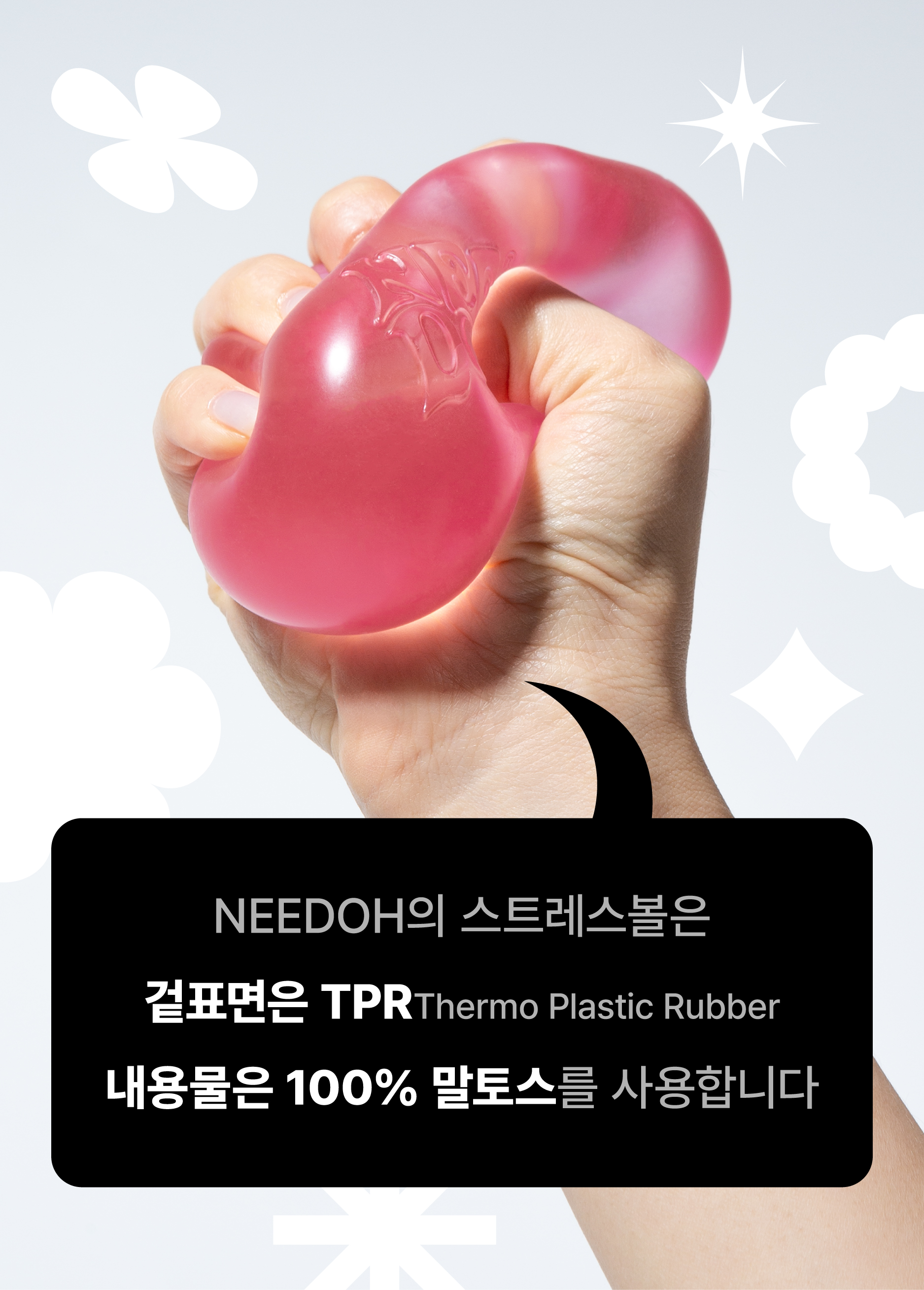 대부분의 스트레스볼(말랑이, 젤리공 등)은 PVC 소재로 만들어져 저렴하고 튼튼하지만, 미세플라스틱 문제로 인체와 환경에 유해할 수 있는 우려가 있습니다.