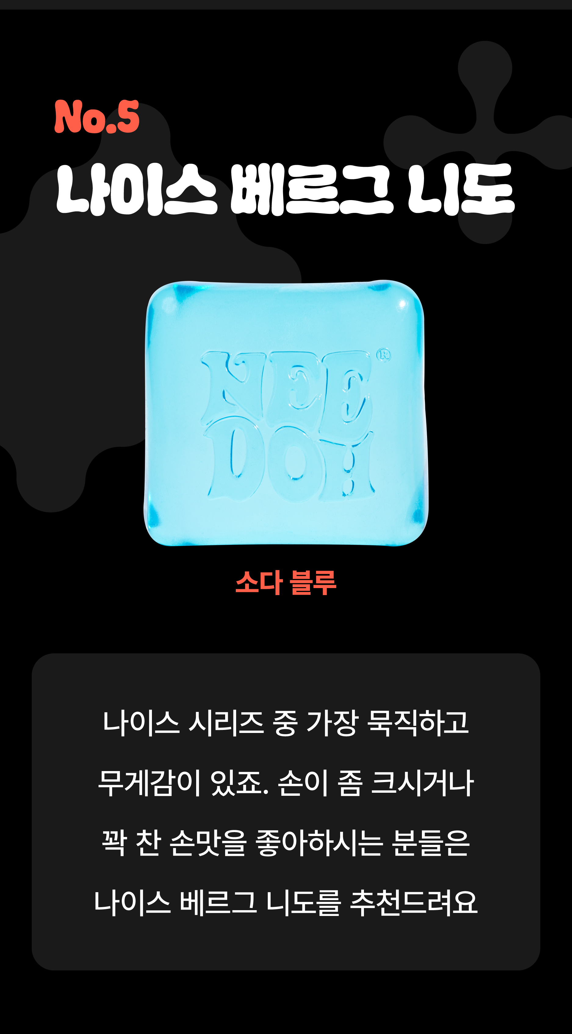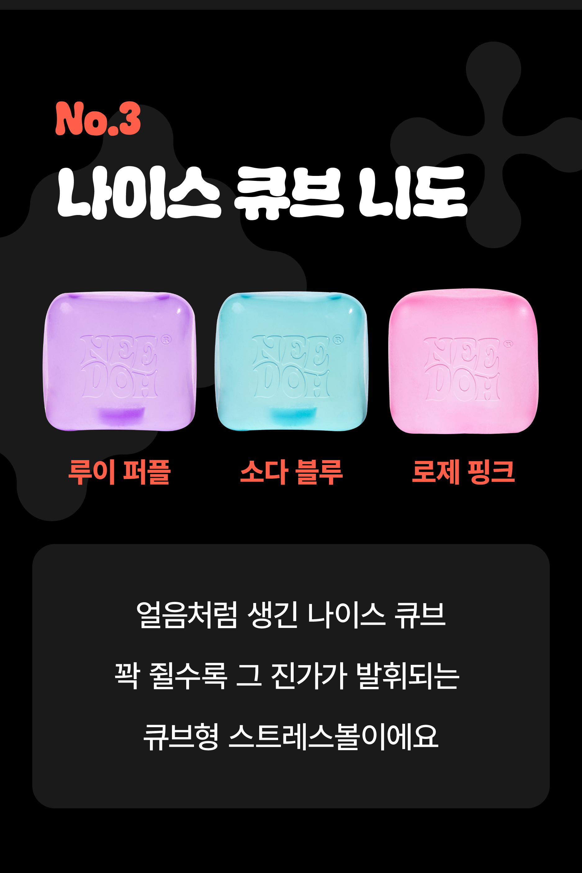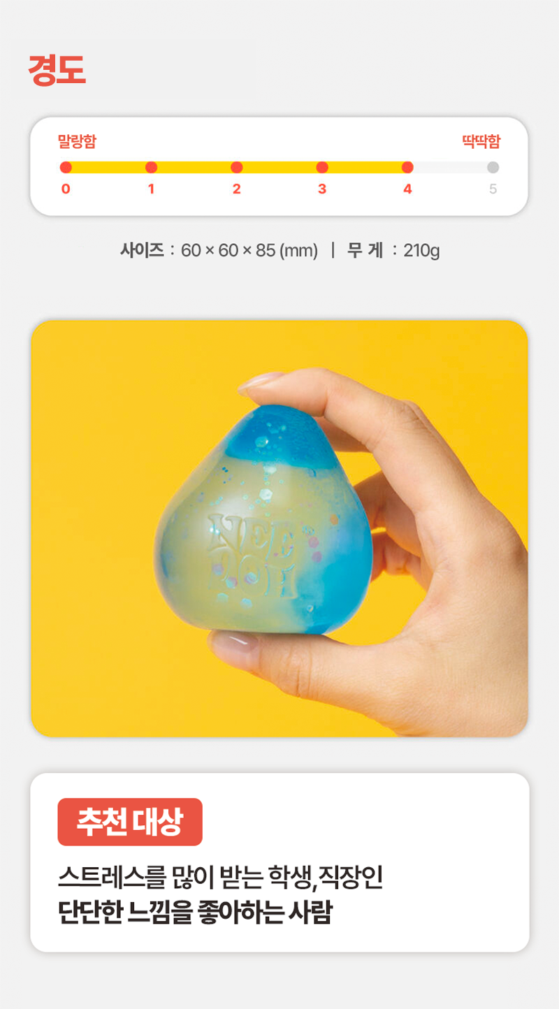 고민의 연장선에서저와 같은 고민을 하는 많은 분들께  고품질이면서도 디자인까지 만족스러운 제품을 소개하고 싶다는 목표가 생겼고국내에는 아직 수입처가 없던 니도 스트레스볼을 직접 컨택하여 정식 수입하게 되었습니다.