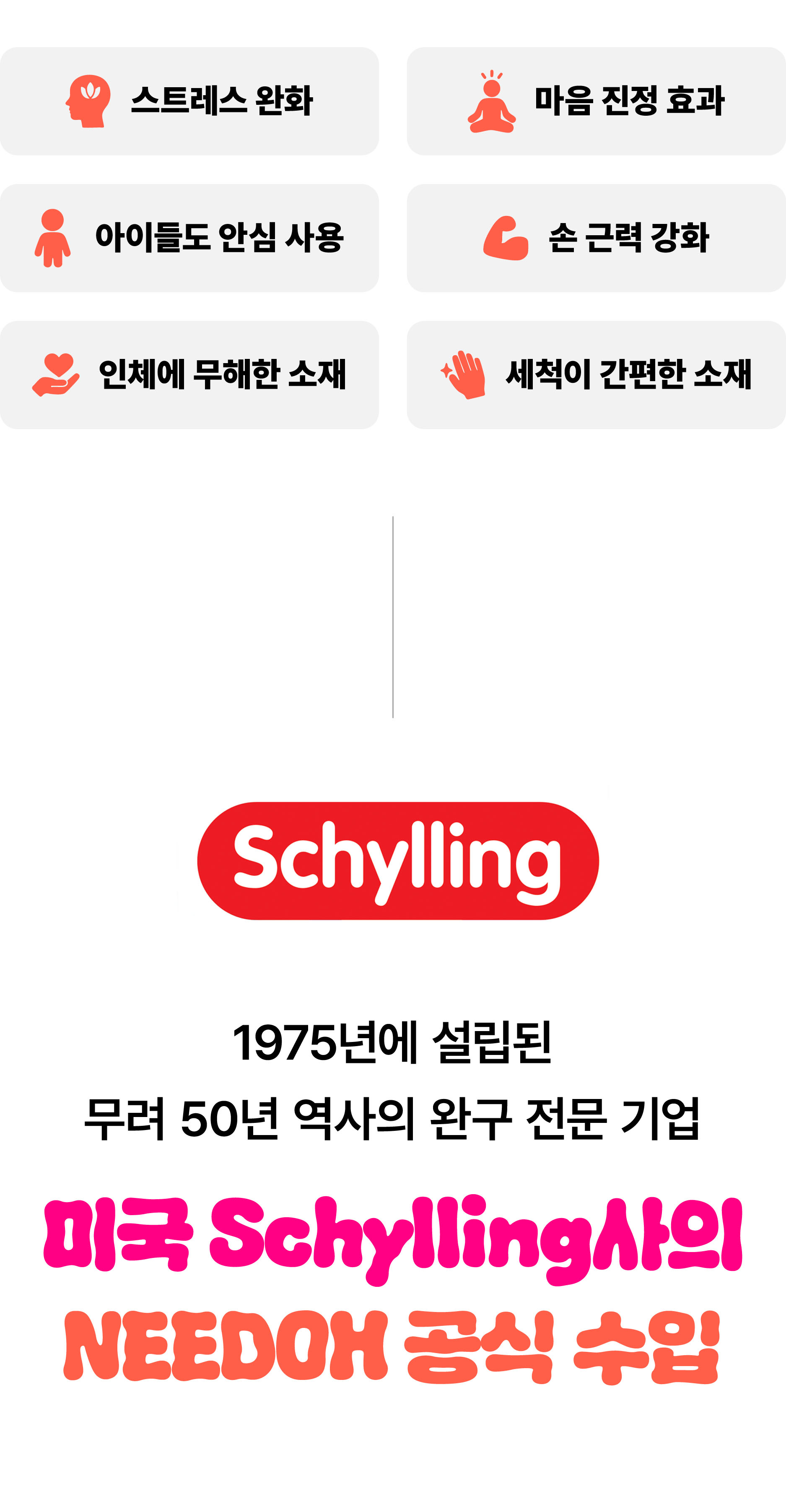 그리고 이번에는미국 50 전통의 완구 기업 Schylling 社와의 독점 계약을 통해   세계적으로 사랑받는 NeeDoh 스트레스볼을 한국에 처음으로 정식 소개드립니다.