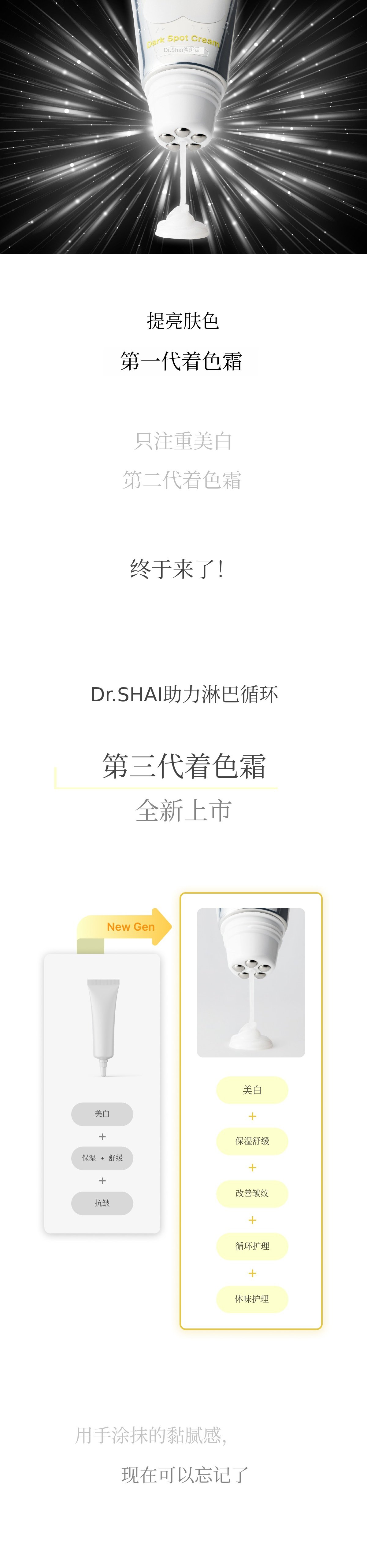 A. 不会。Dr.Shai淡斑霜不是遮盖肤色的提亮霜。
