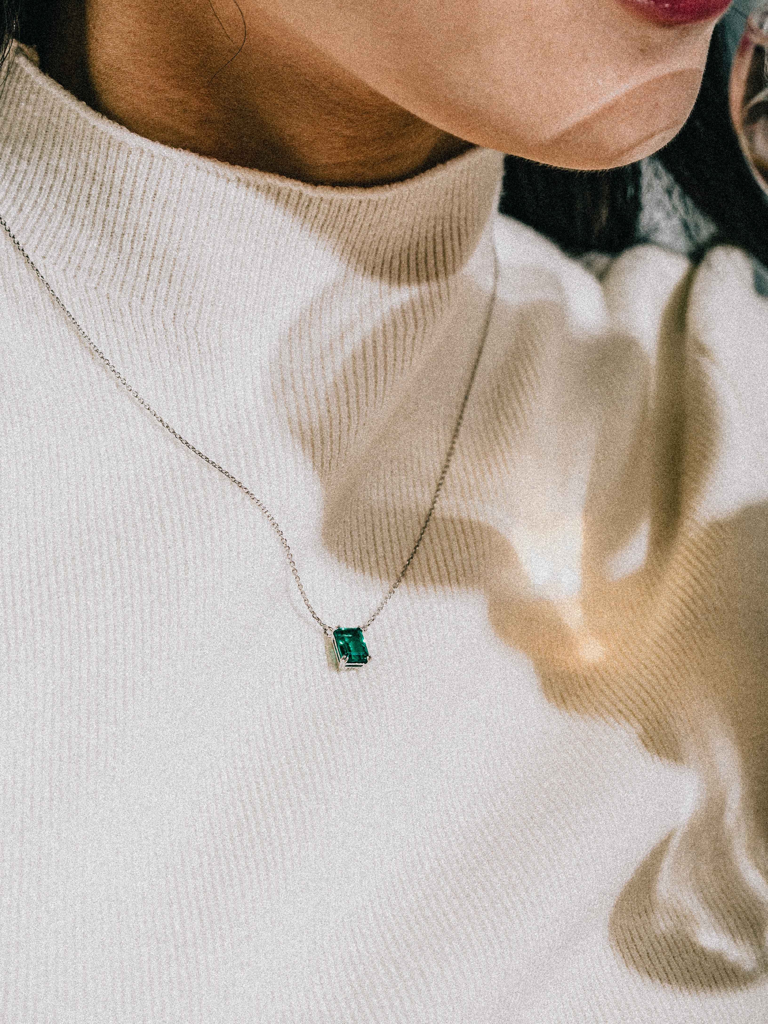项链与戒指为相同尺寸1克拉祖母绿 为一套设计进行了镶嵌