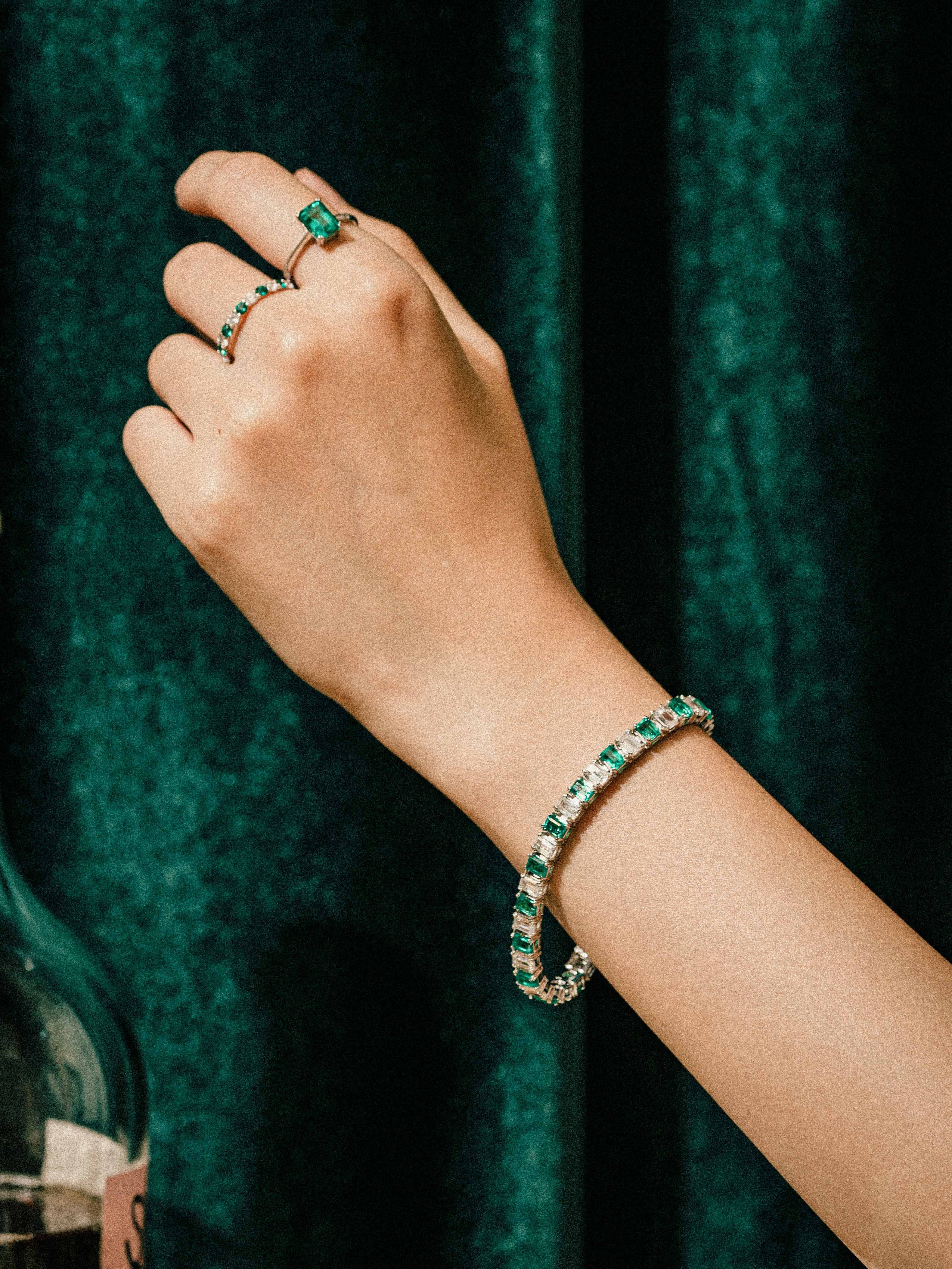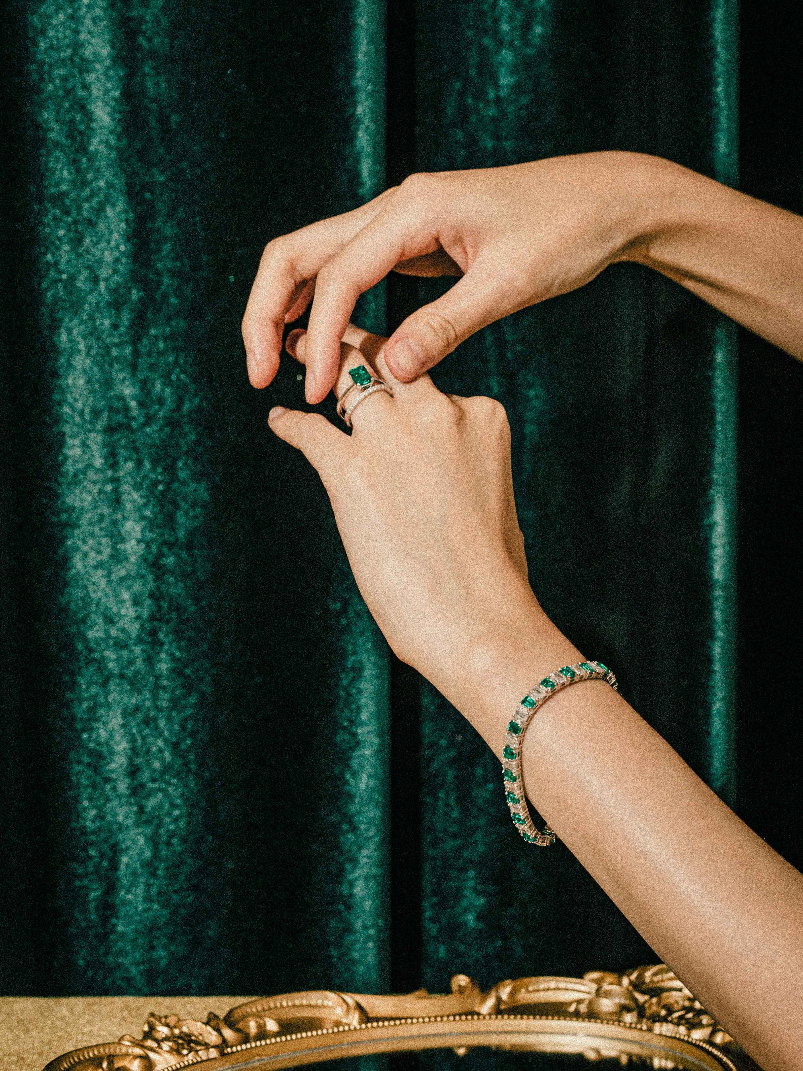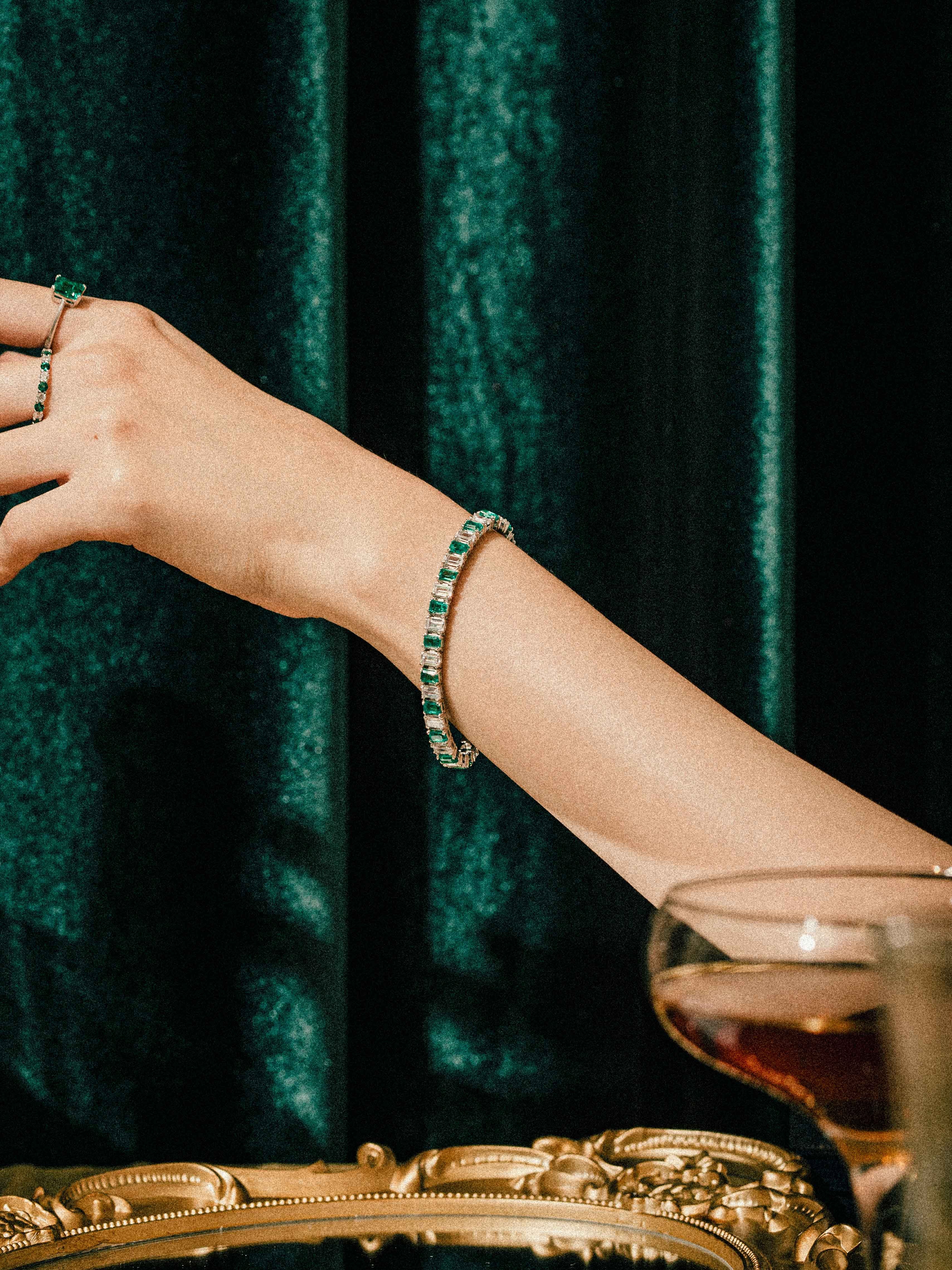 与Eclat套装和搭配更加丰富的追加配置,是将实验室祖母绿与白色立方氧化锆交错镶嵌的高级珠宝