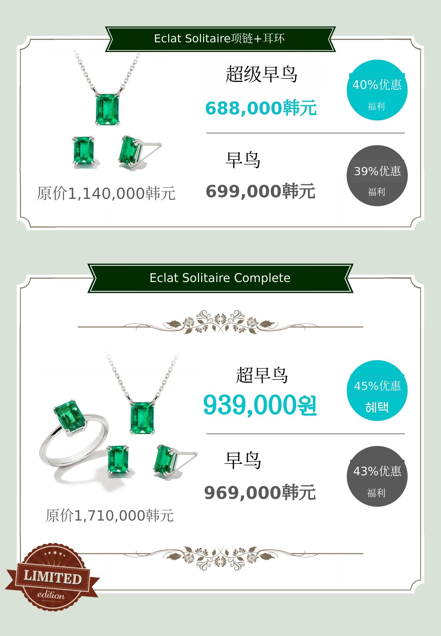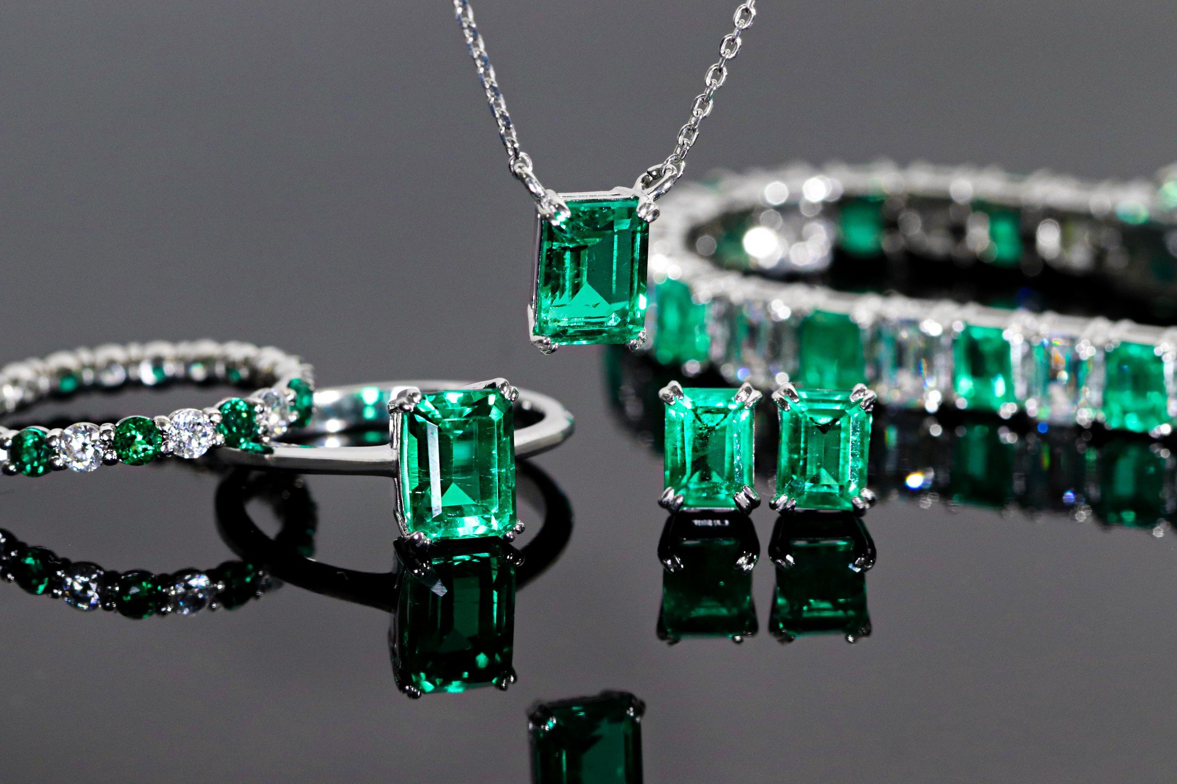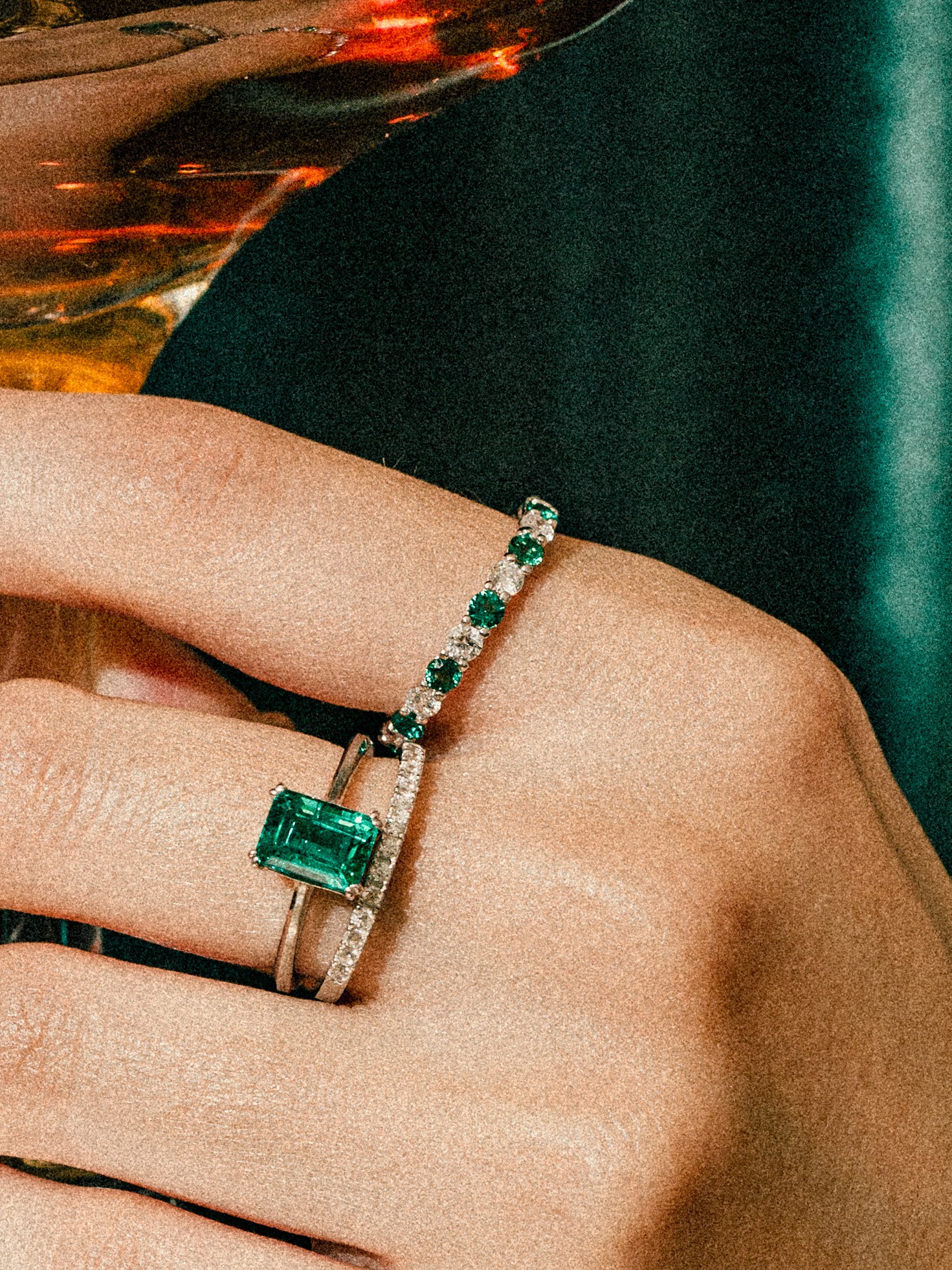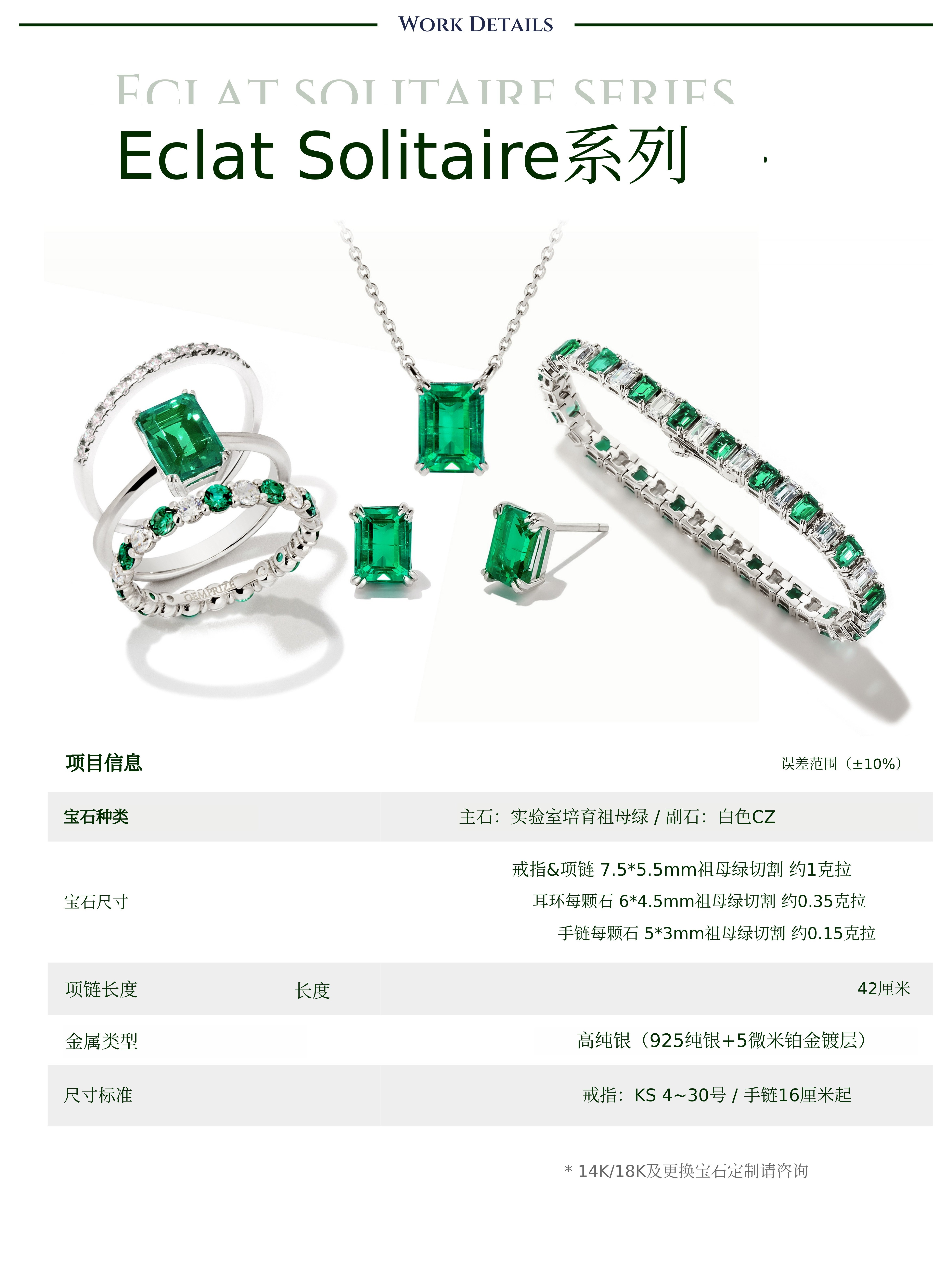 与Eclat套装和搭配更加丰富的追加配置,是将实验室祖母绿与白色立方氧化锆交错镶嵌的高级珠宝