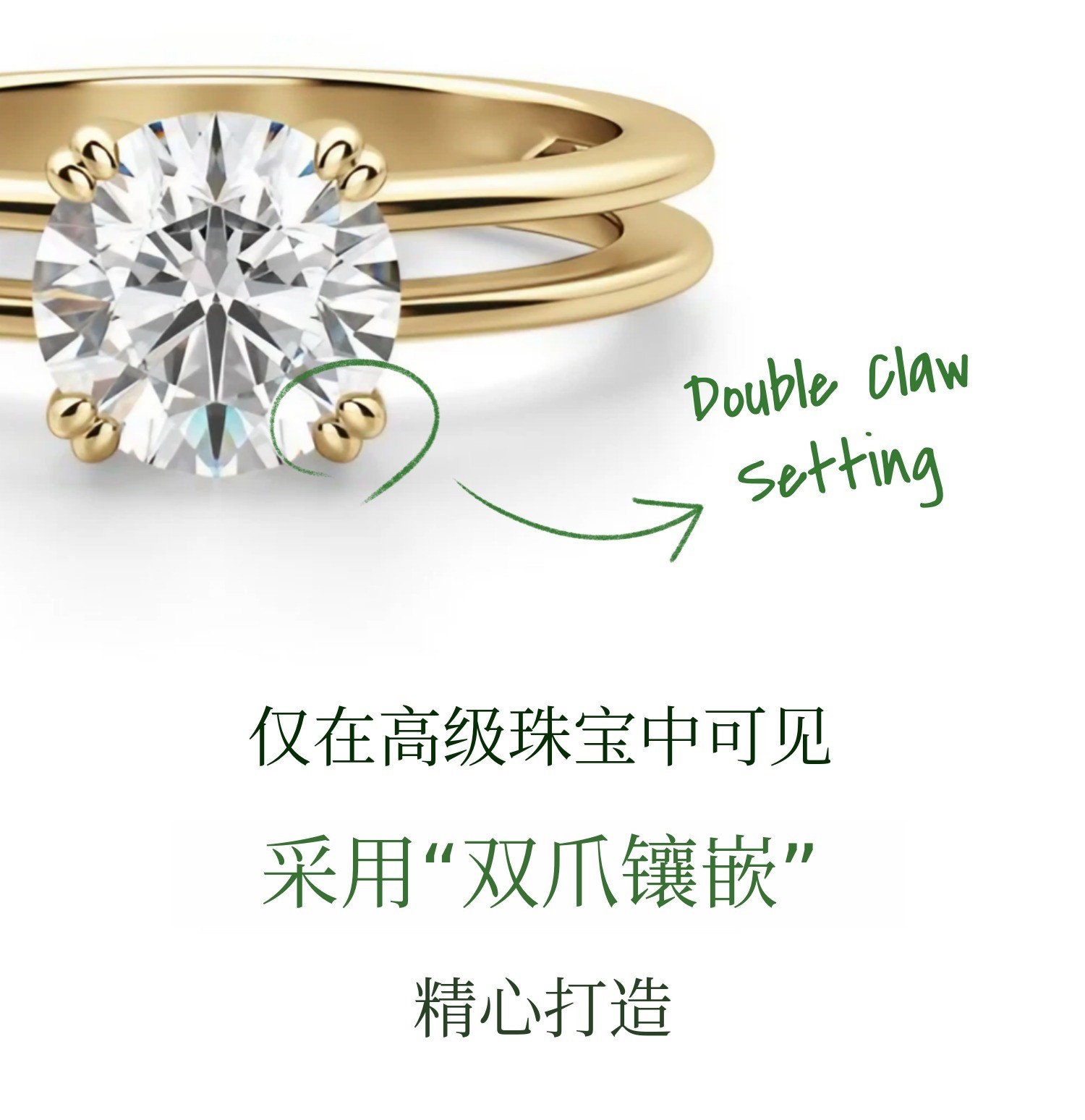 但在Eclat Solitaire中,采用了双爪镶设置,