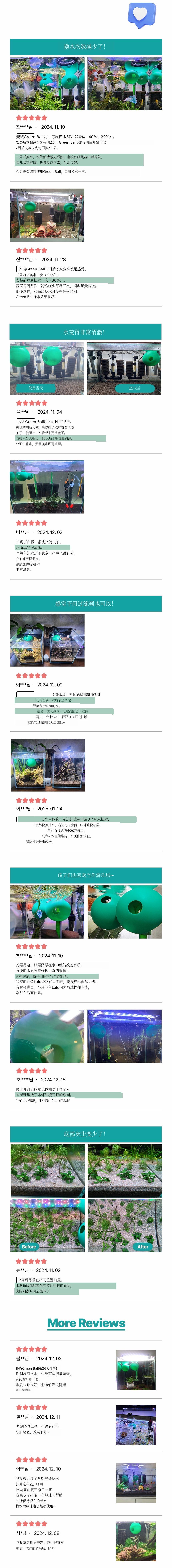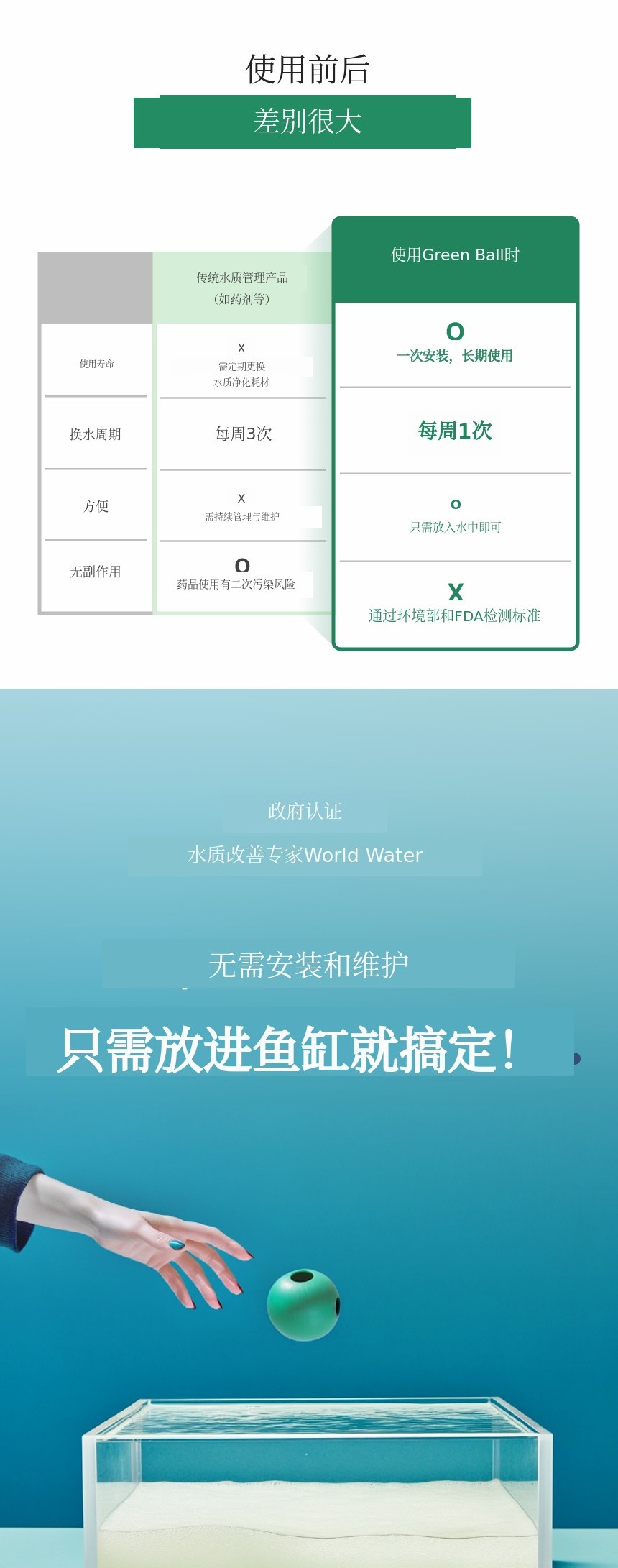 * 绿球不是短期起效的化学药品,而是从根本上营造良好水质环境的产品,效果大约在2周后可见。