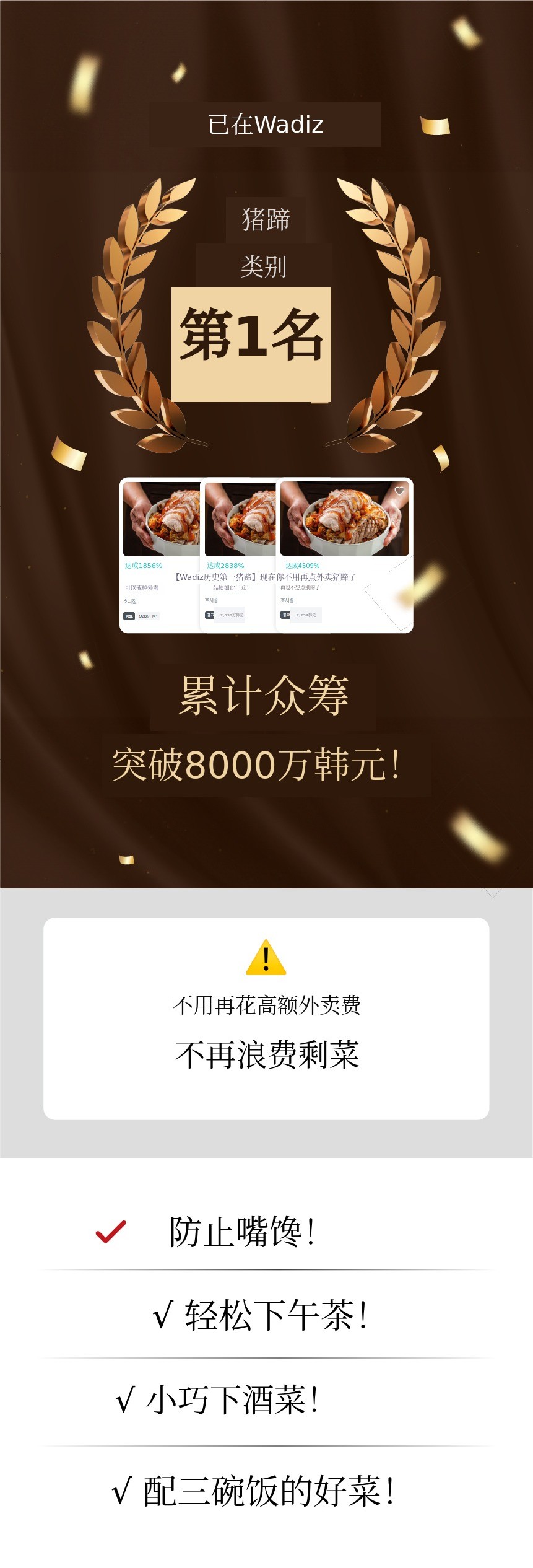 好时节在首次将方便食品猪蹄、烤肉产品推向市场时,第一次挑战就是与Wadiz一起完成的。