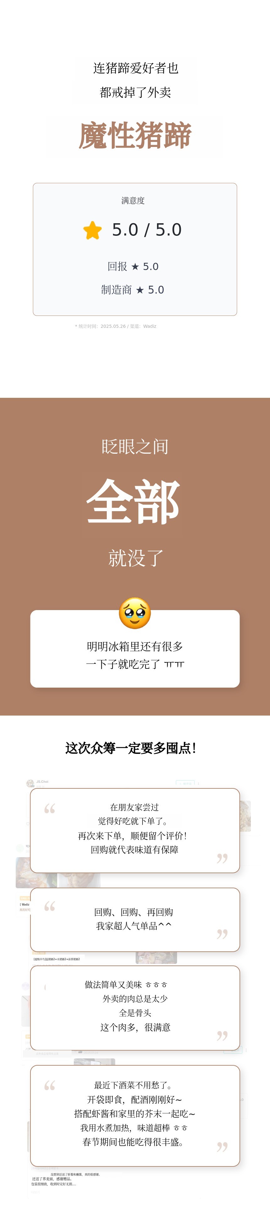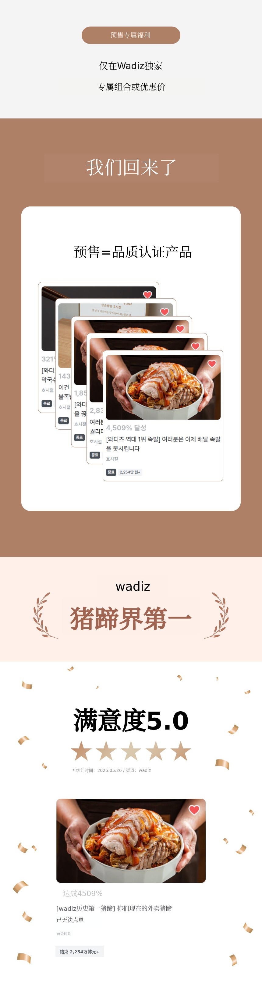 体验过我们产品的人说,体验好时节的产品后,对方便食品猪蹄、烤肉的标准都会改变。为了通过Wadiz独家、只为Wadiz支持者准备的组合和福利结识更多缘分,我们策划了本项目。期待与比任何人都喜欢猪蹄的多样支持者们有更多的相遇。