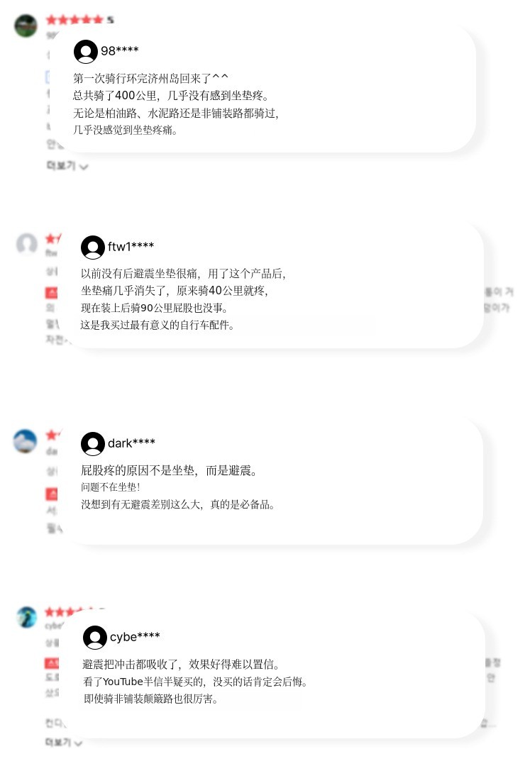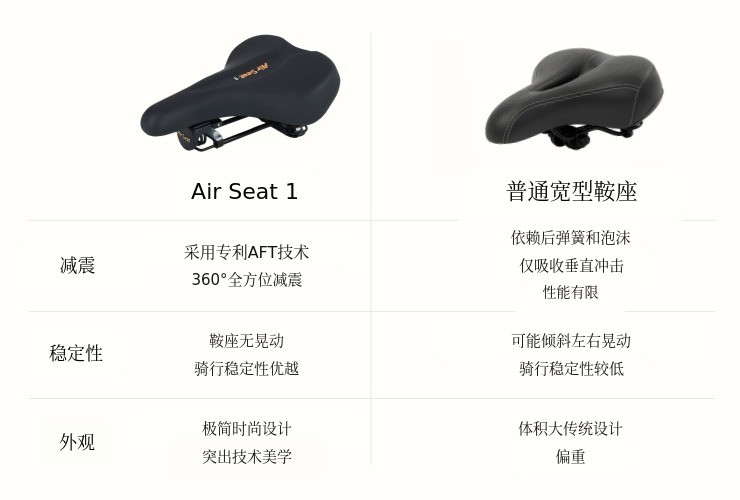 A : 相比普通弹簧坐垫,缓冲感更强,同时骑行时更加稳定,没有左右晃动。