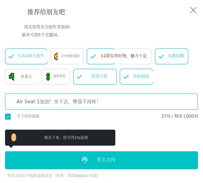 AIR SEAT 1是在Wadiz首次公开 的产品,