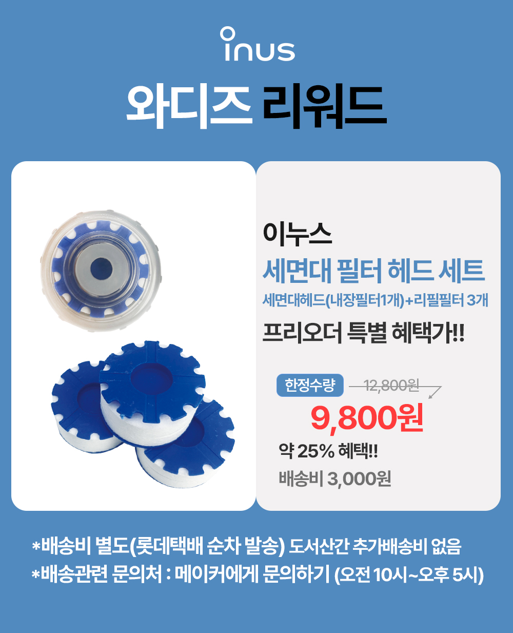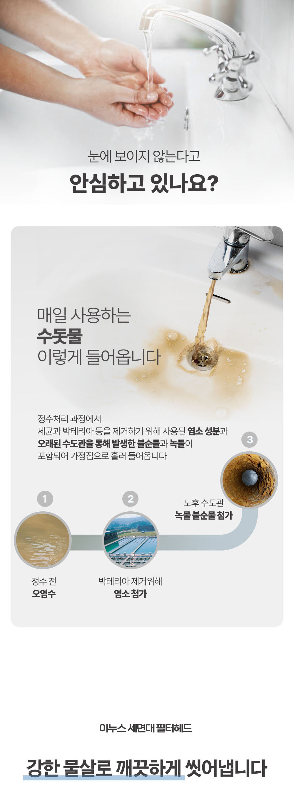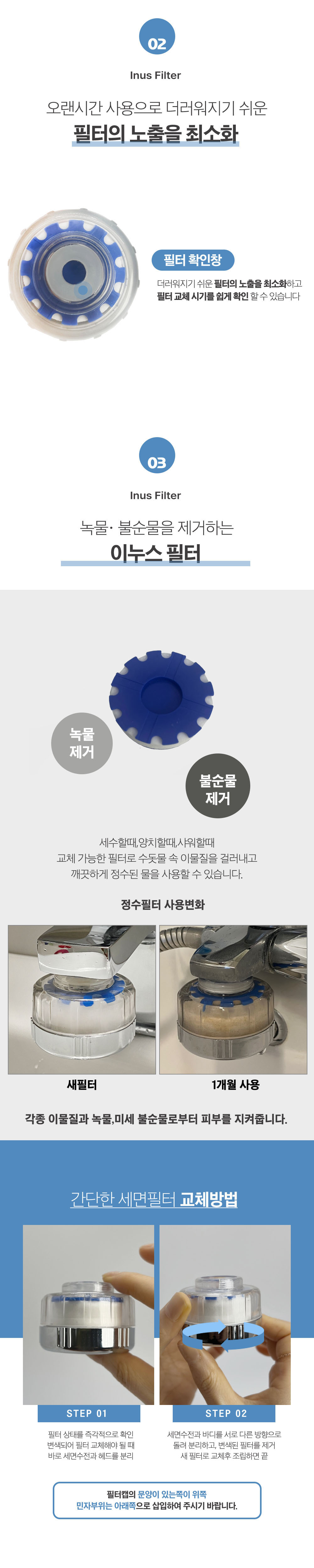 욕실 명가 이누스에서 만든 세면대 필터 헤드 세트를 프리오더 혜택가로