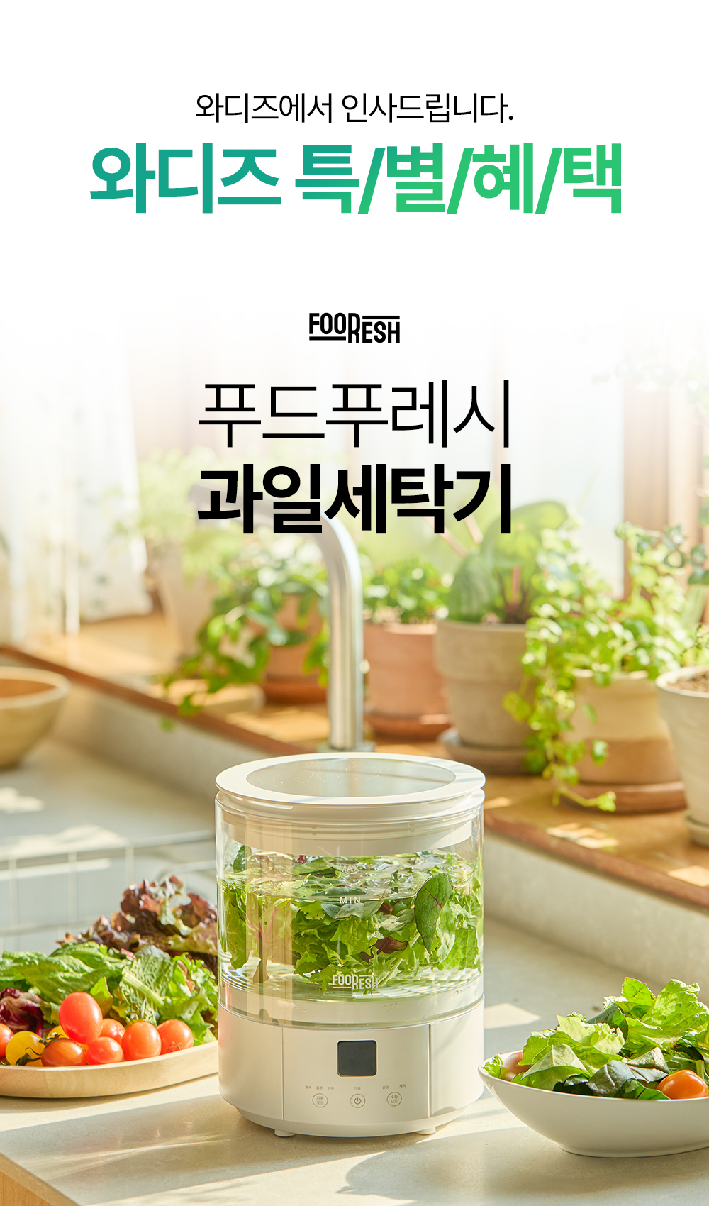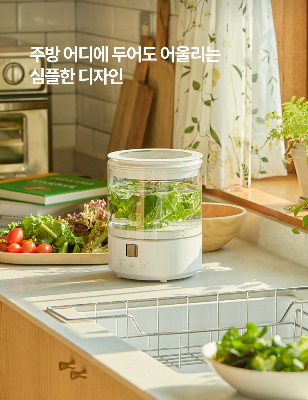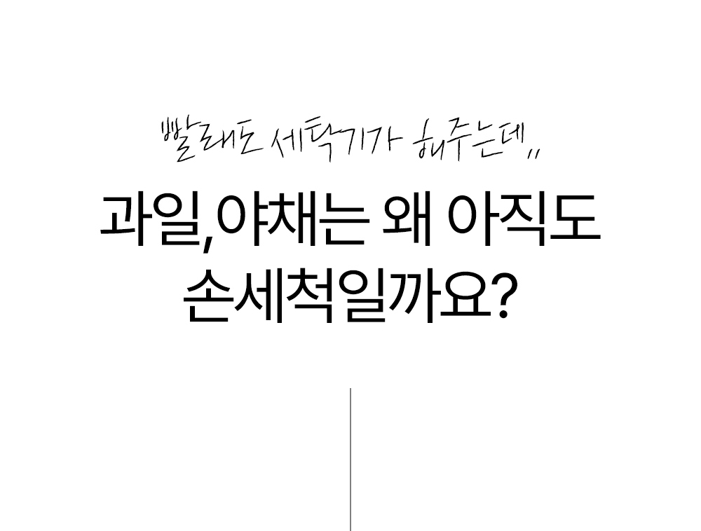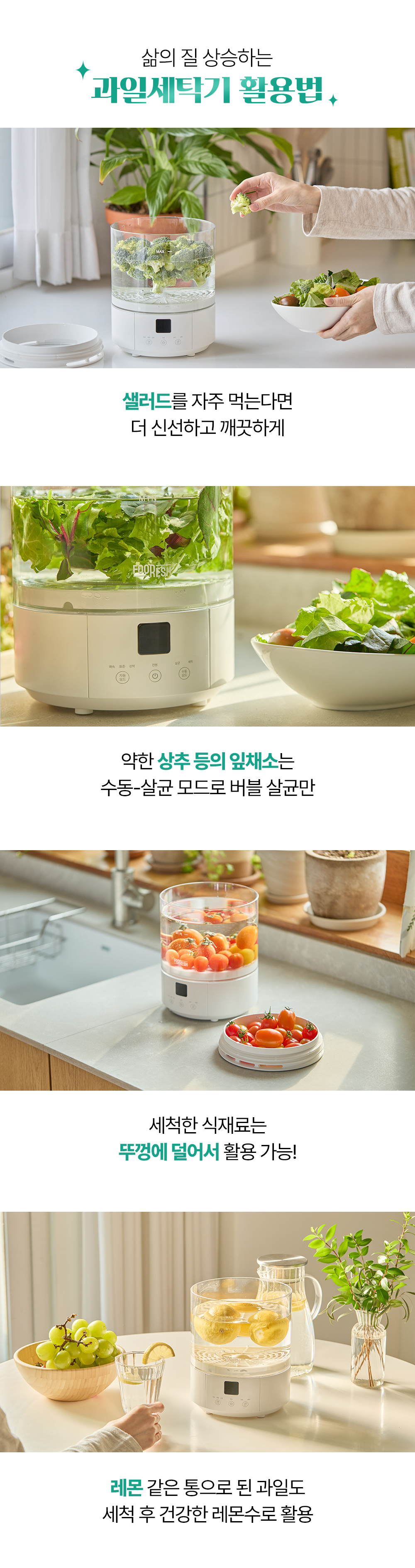 음식이 닿는 모든 곳에 신선함을 주기 위해, 그리고 신선함 뿐만 아니라 우리가 모르고 있었던 세균으로부터 음식을 지키기 위해 '과일세탁기'로 다시 돌아왔습니다.