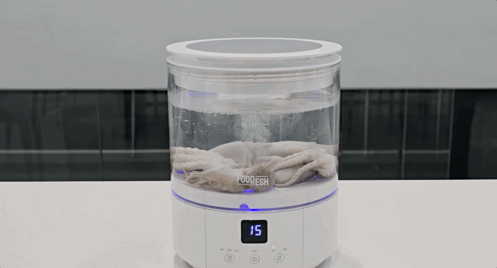STEP 02. 과일세탁기에 '세척'모드로 5분 돌리기
