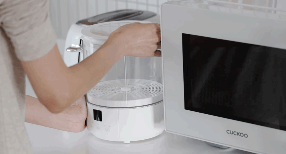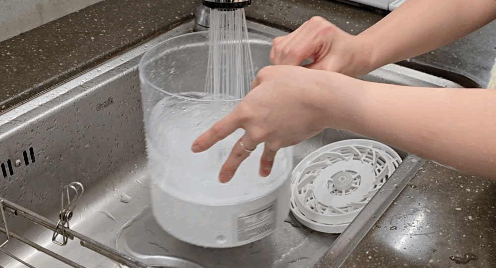 제품 하단부(채반)를 분리한 후, 제품 전체를 물로 세척하여 헹구면 간단한 세척 끝!