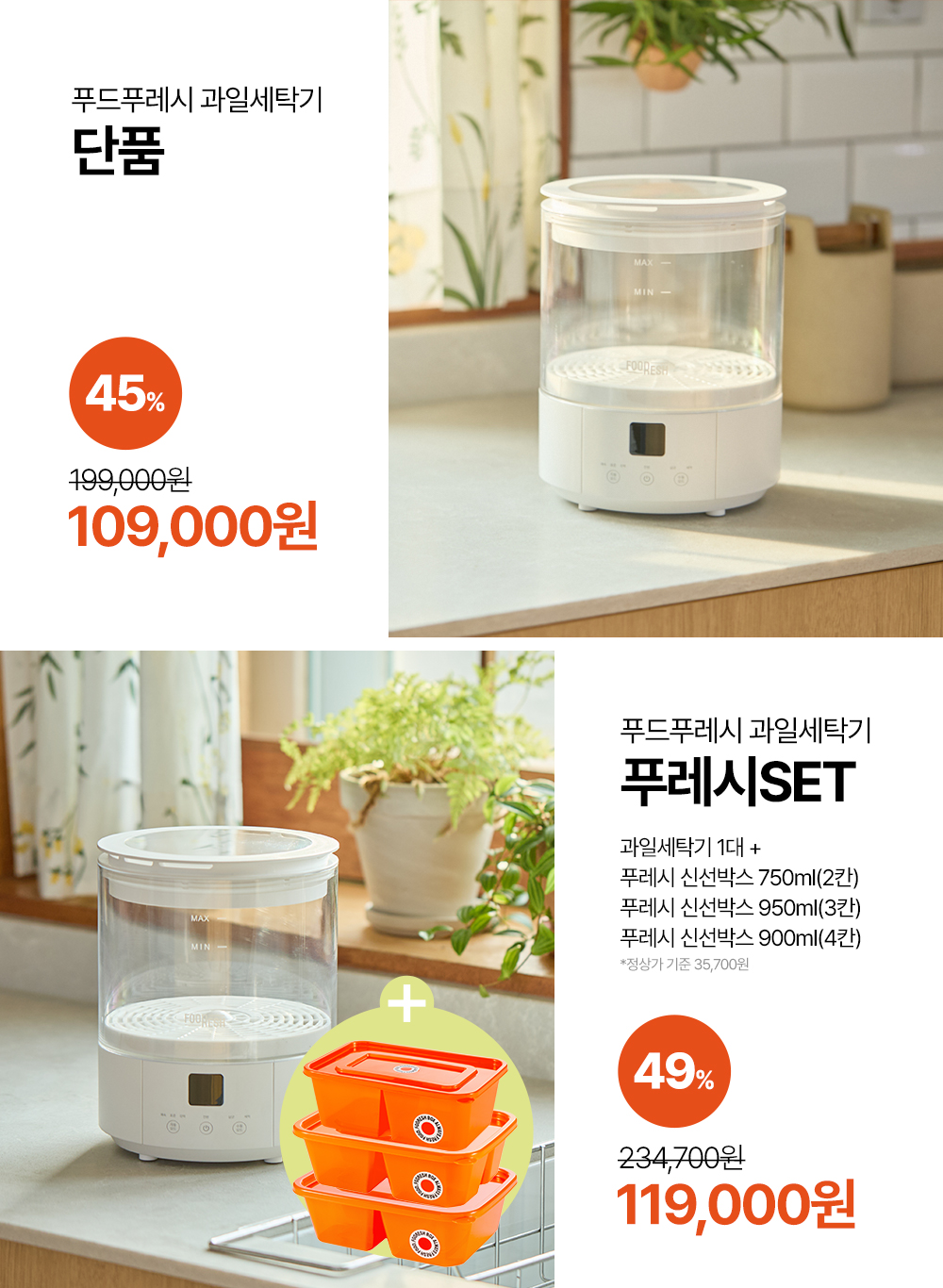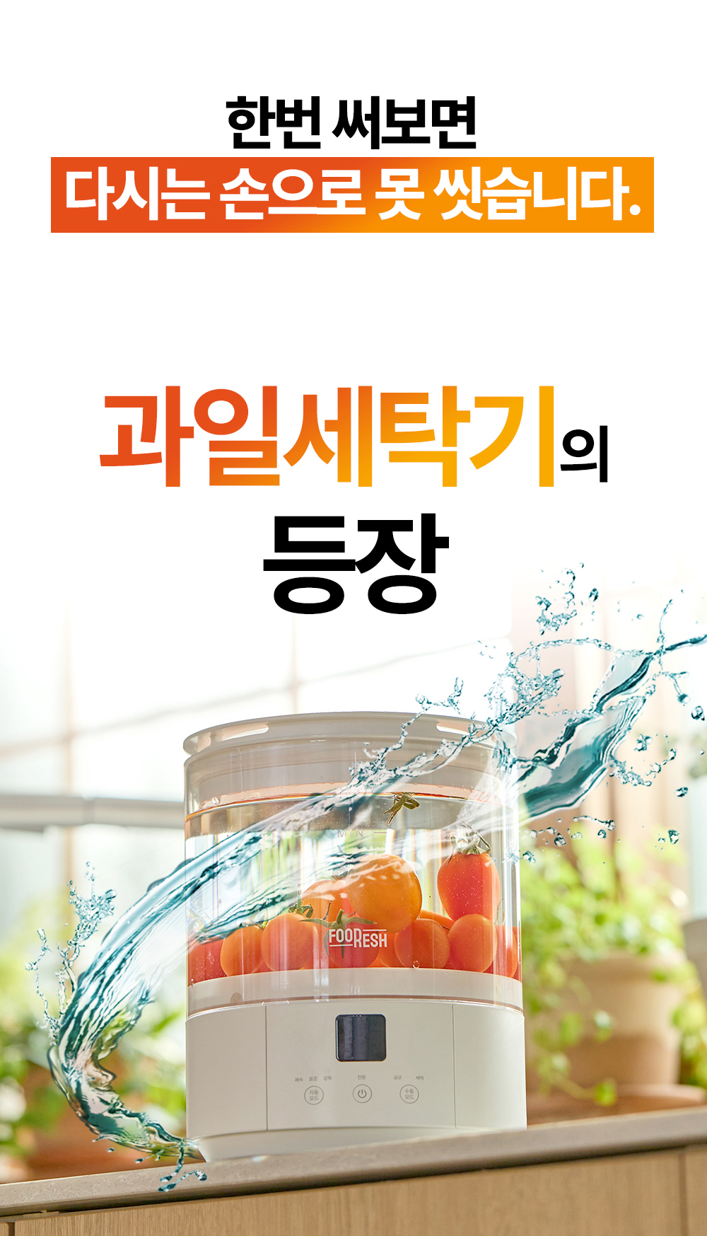이제 번거롭게 손으로 세척하지 말고 푸드푸레시의 과일세탁기를 사용해서 더 편한 주방생활을 가져보세요 :)