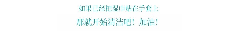 1. 把湿巾贴在清洁手套上,清洁准备完成!