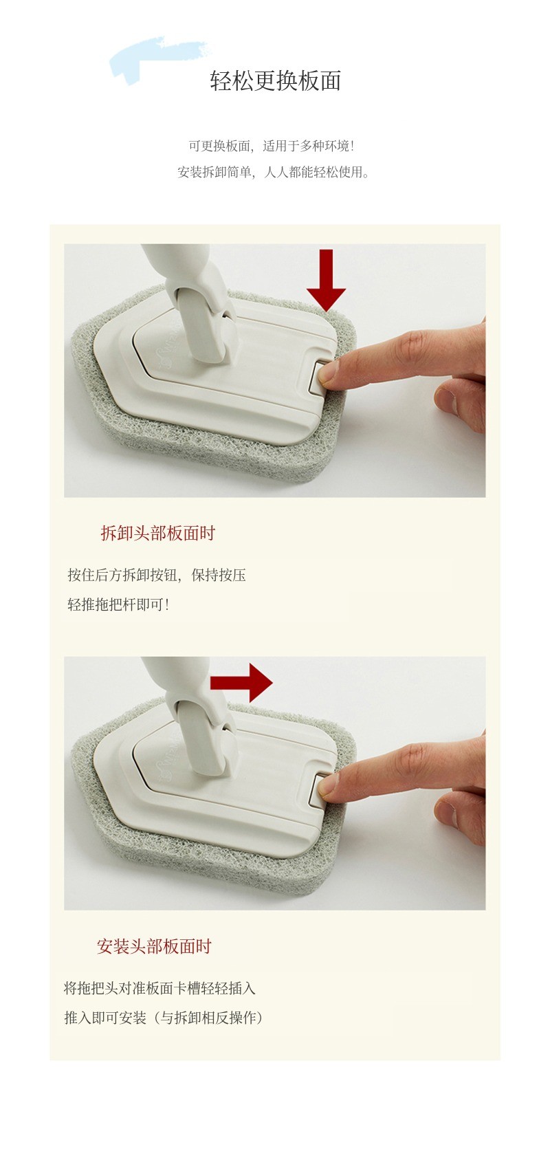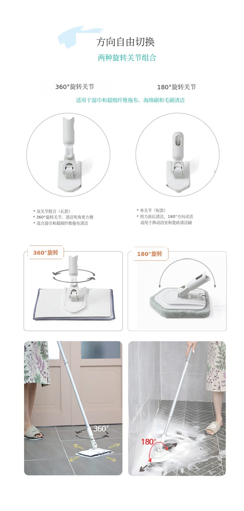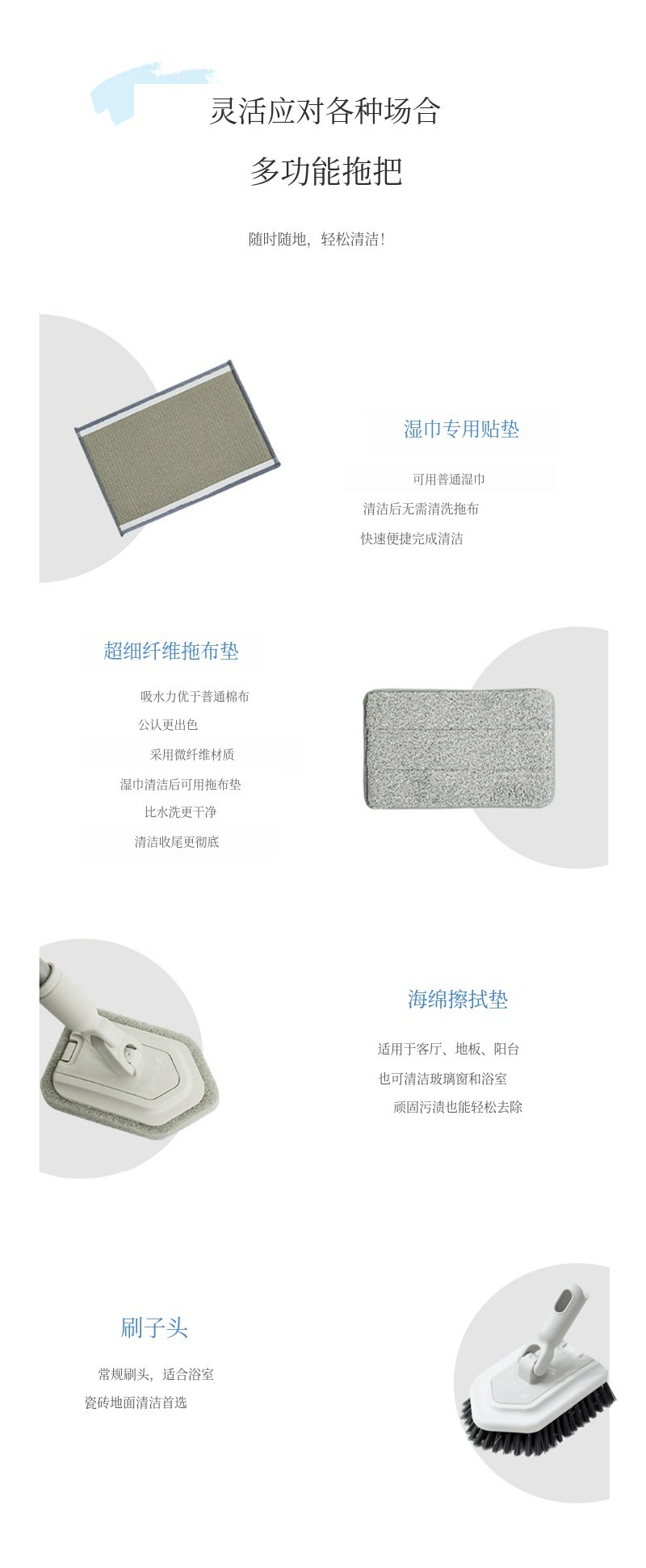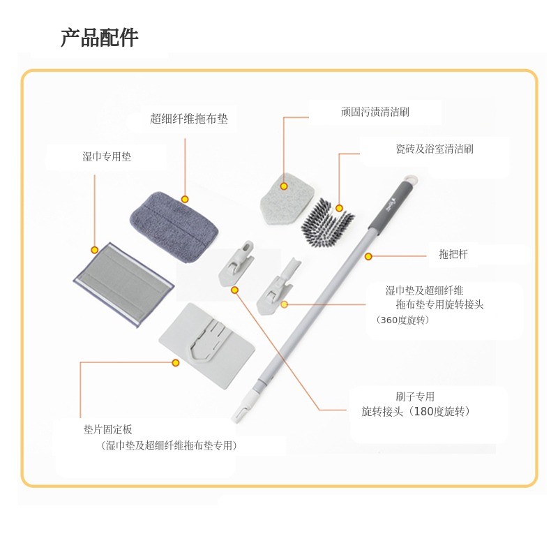 湿巾贴合清洁、超细纤维抹布清洁、顽固污渍清洁用海绵擦、刷子(Bristle)清洁,4种清洁工具全部集于一把拖把!