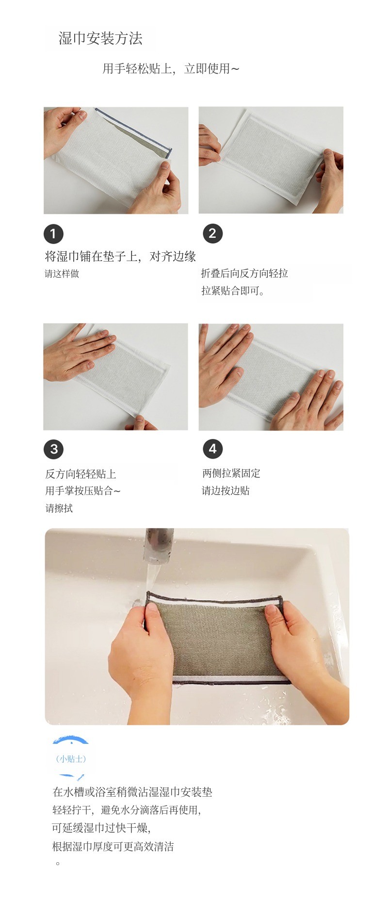 只需贴上湿巾,清洁准备就完成了!