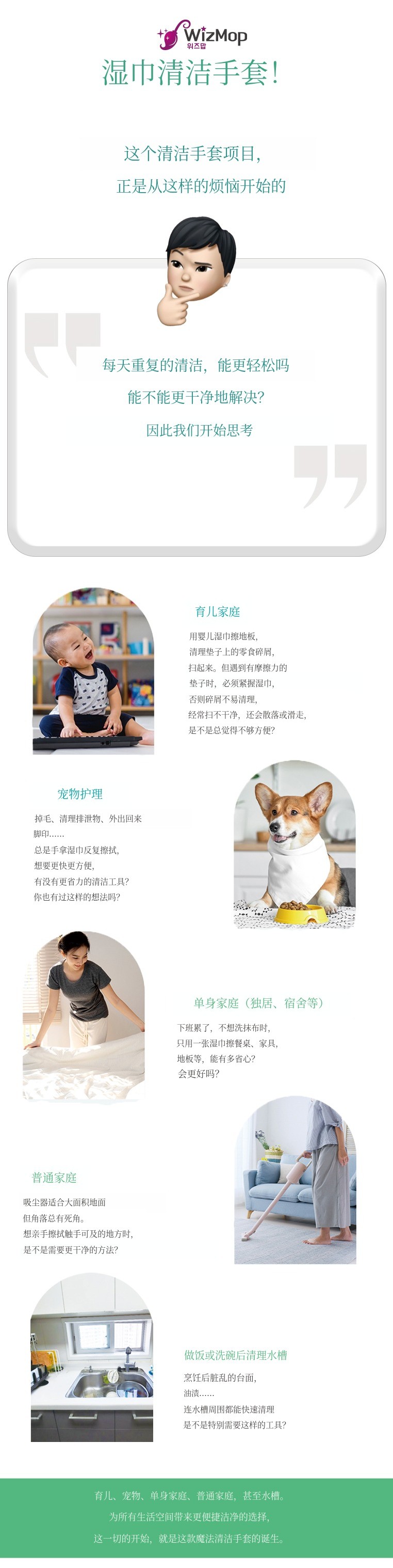 之后湿巾贴合清洁拖把 和这次推出的湿巾贴合清洁手套 相继诞生。