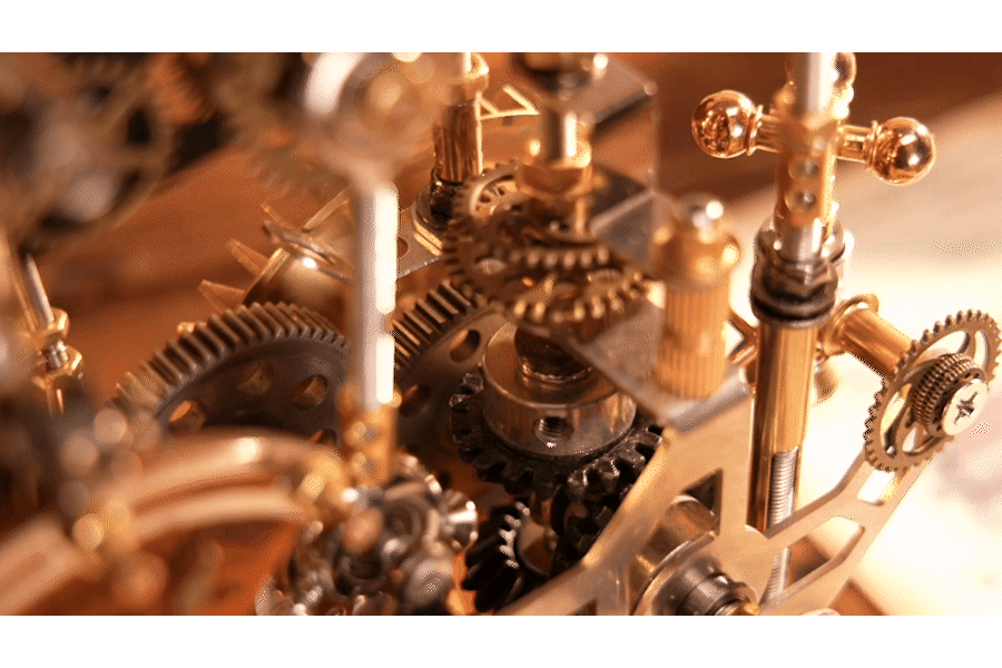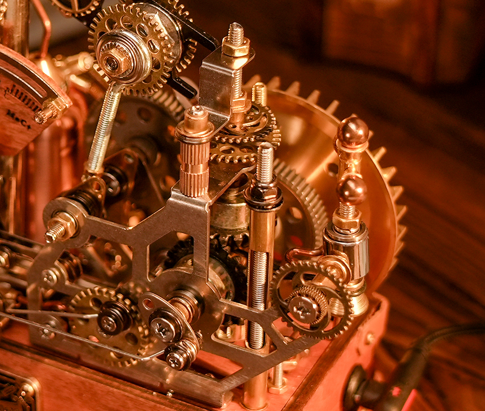 기어가 움직일 때마다 들리는 충돌음이 실제와 같은 몰입감을 선사합니다. 찰칵거리고 딸깍거리는 소리는 스팀펑크 메커니즘의 생동감을 전달합니다. 날 것 그대로의 산업미를 그대로 느껴보세요.