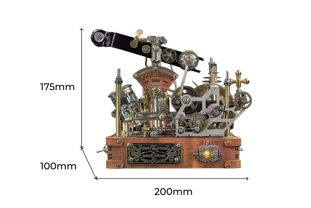 Aethercore는 증기기관에서 영감을 받고 스팀펑크 요소를 더해 Mecrob 디자이너들이 51일 동안 546개의 부품과 4번의 정교한 개선을 거쳐 완성한 작품입니다. 핵심에는 정밀한 기어 구동 시스템이 탑재되어 있어 정밀한 움직임과 실제같은 충돌음을 재현합니다.
