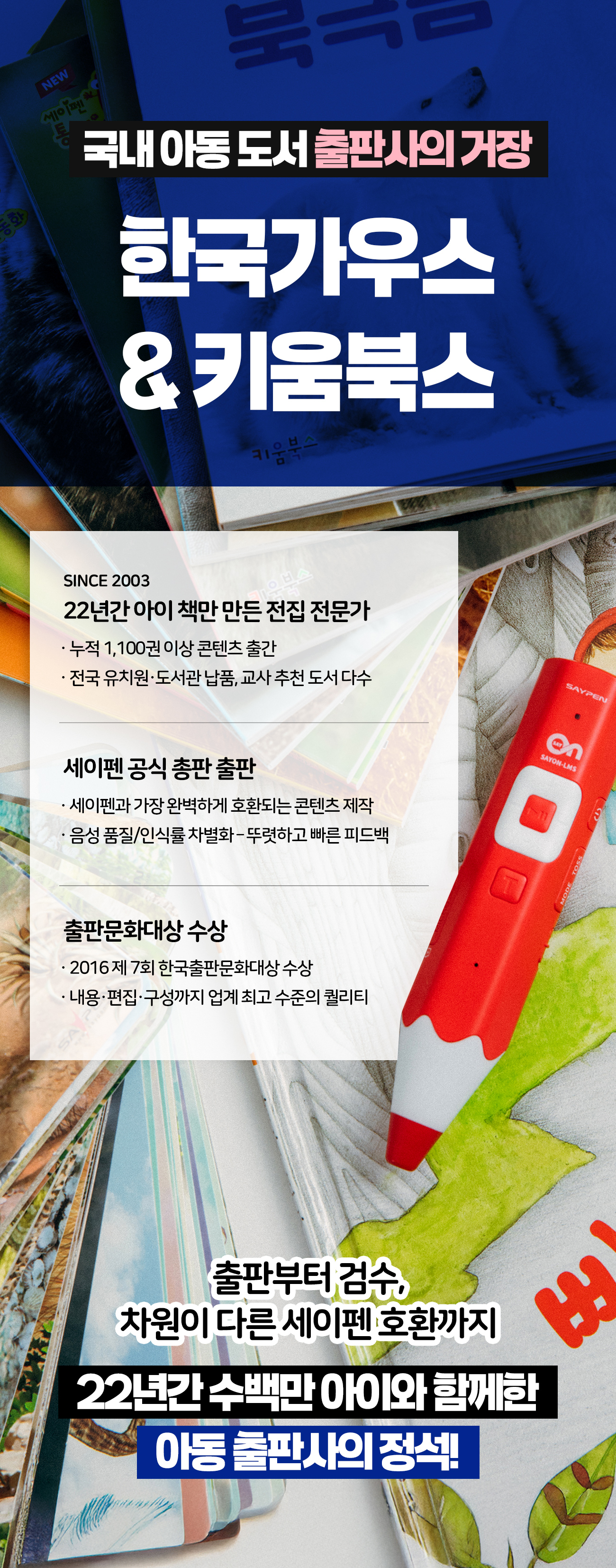한국가우스는 우리가 만든 동화책이 아이들의 손때로 따뜻해지길 바라는 마음으로 진심을 다하고 있습니다.아이들은 책을 통해 언어 능력을 키우고, 상상력을 키우고, 감정을 이해하고 표현하는 능력을 키워 갑니다. 분명 ‘좋은 책’을 만들면 아이들 마음에 ‘좋은 씨앗’이 심어질 것이라는 사명으로 지금 이 순간에도 최선을 다하고 있습니다.