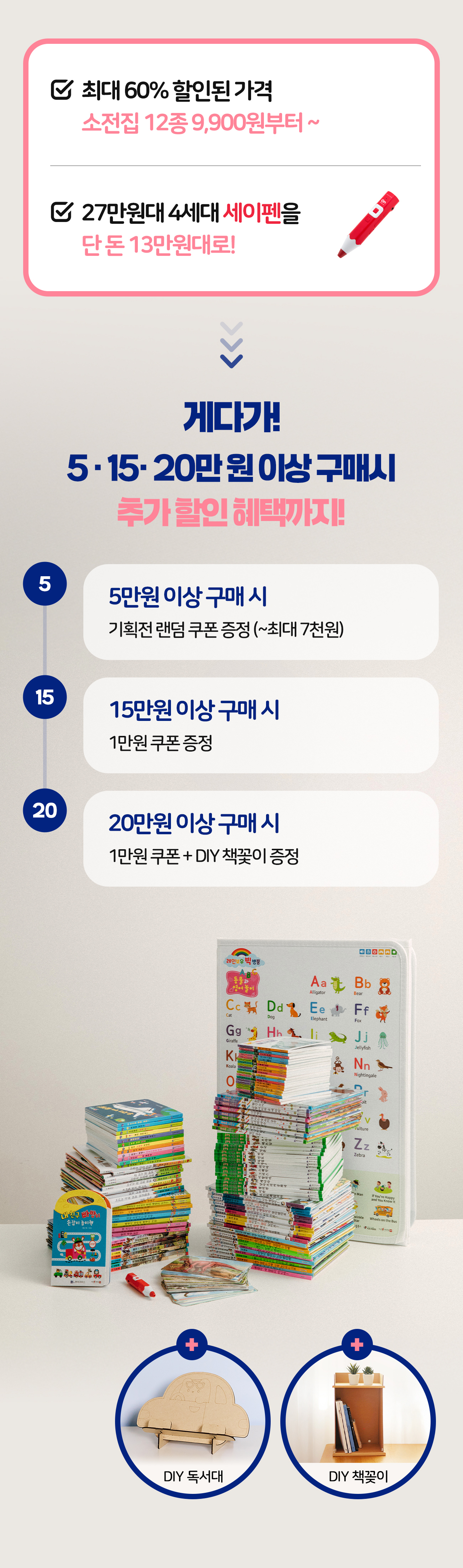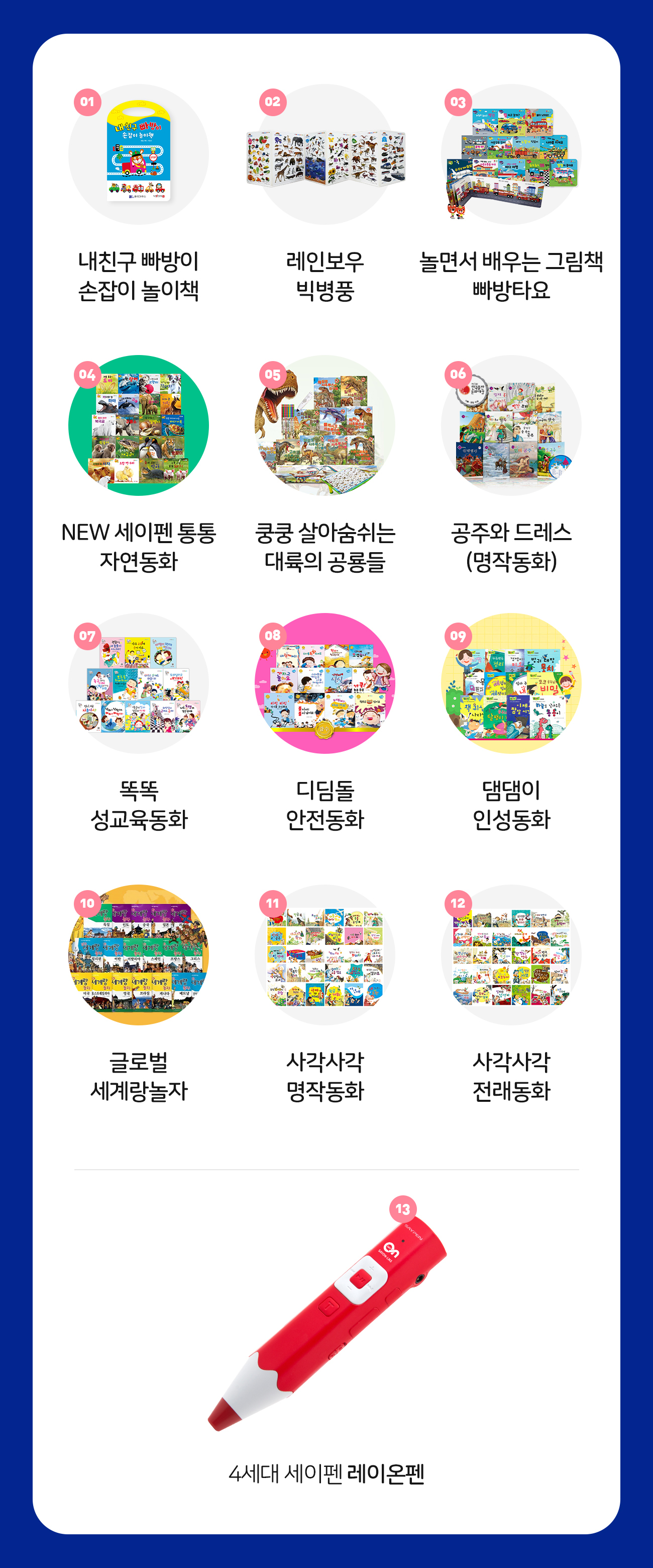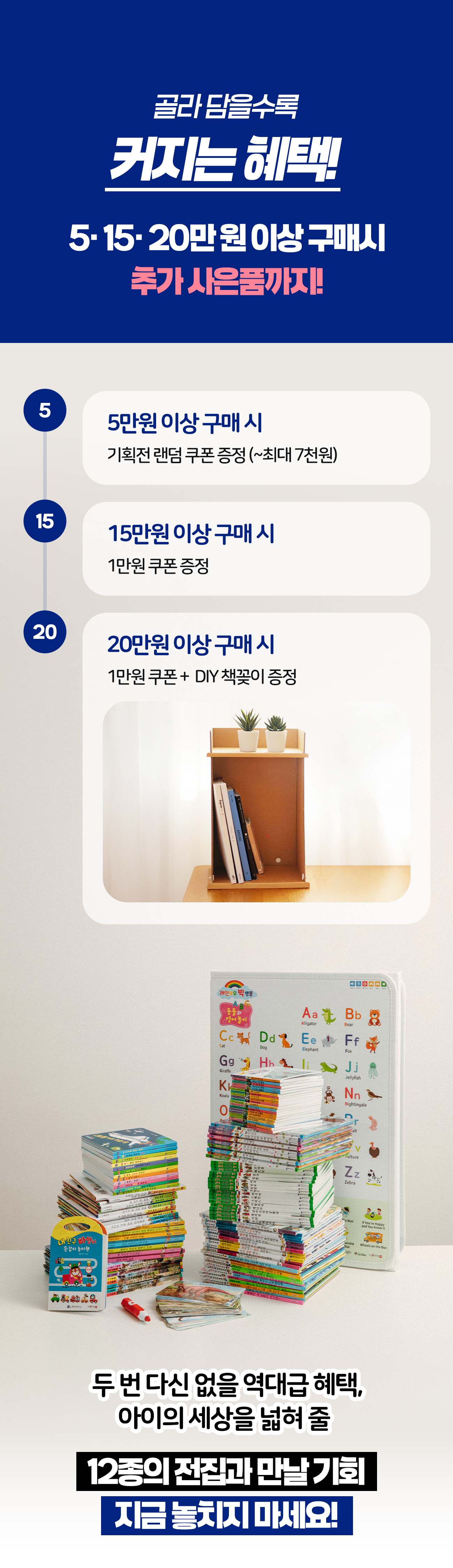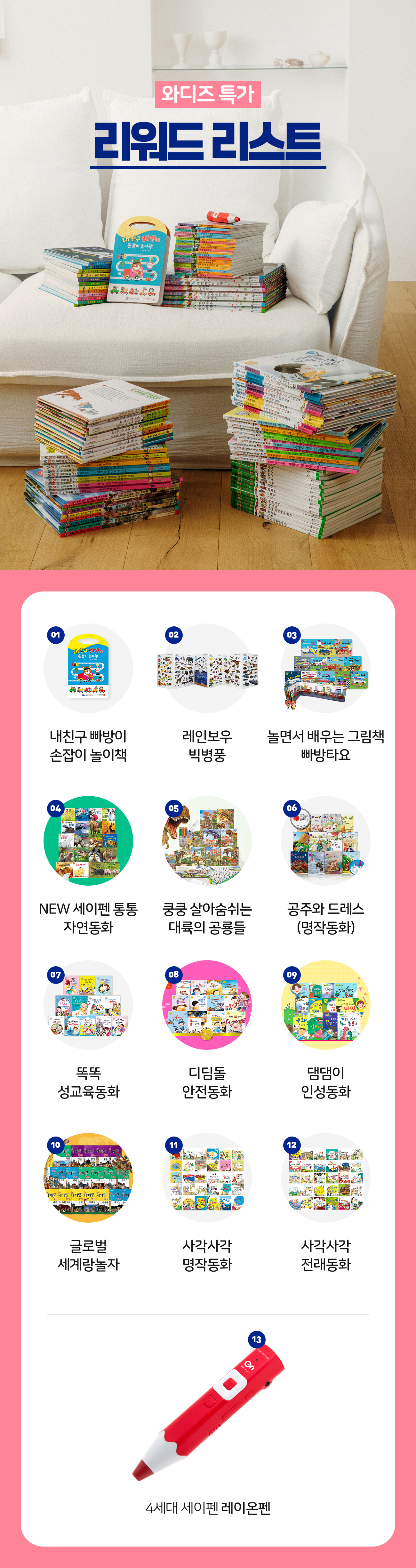아이 나이와 관심사에 딱 맞는 책을 고르기 힘들어하는 부모님들을 위해, 많은 분들이 좋아한 베스트셀러 전집만 모아서 원하는 책만 골라담을 수 있게 만들었습니다.