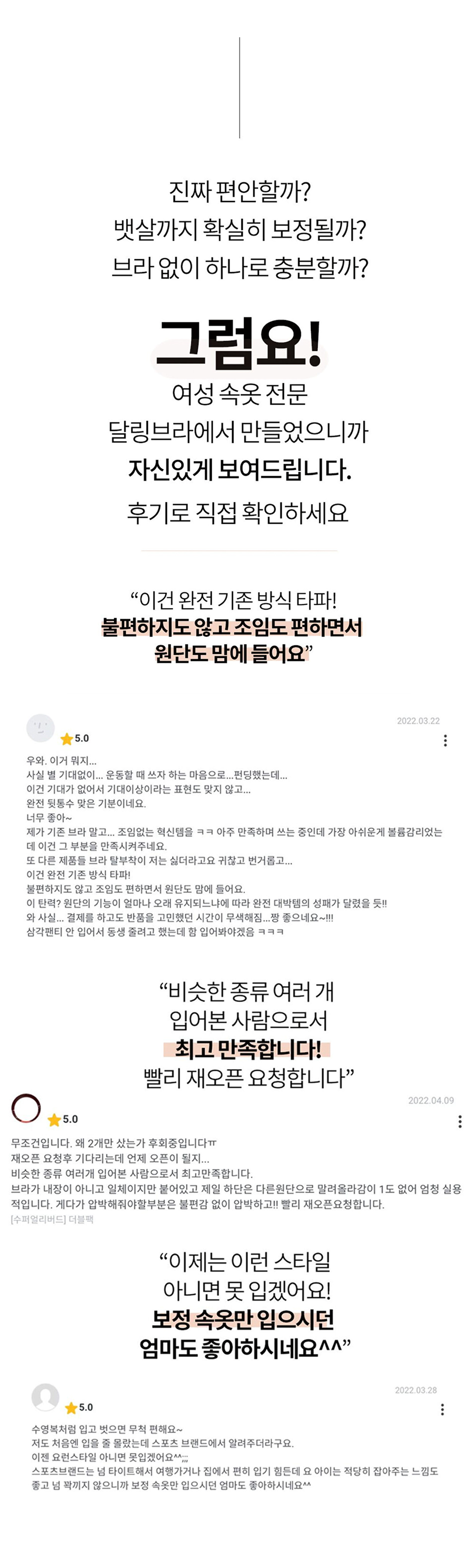 앞으로도 저희는 지속적으로 서포터님들과 소통하여 더욱 좋은 제품으로 찾아올것을 약속드리며 여성분들의 속옷고민을 해결하고 새로운 생활언더웨어를 만들어 가고자 더욱 노력하겠습니다.