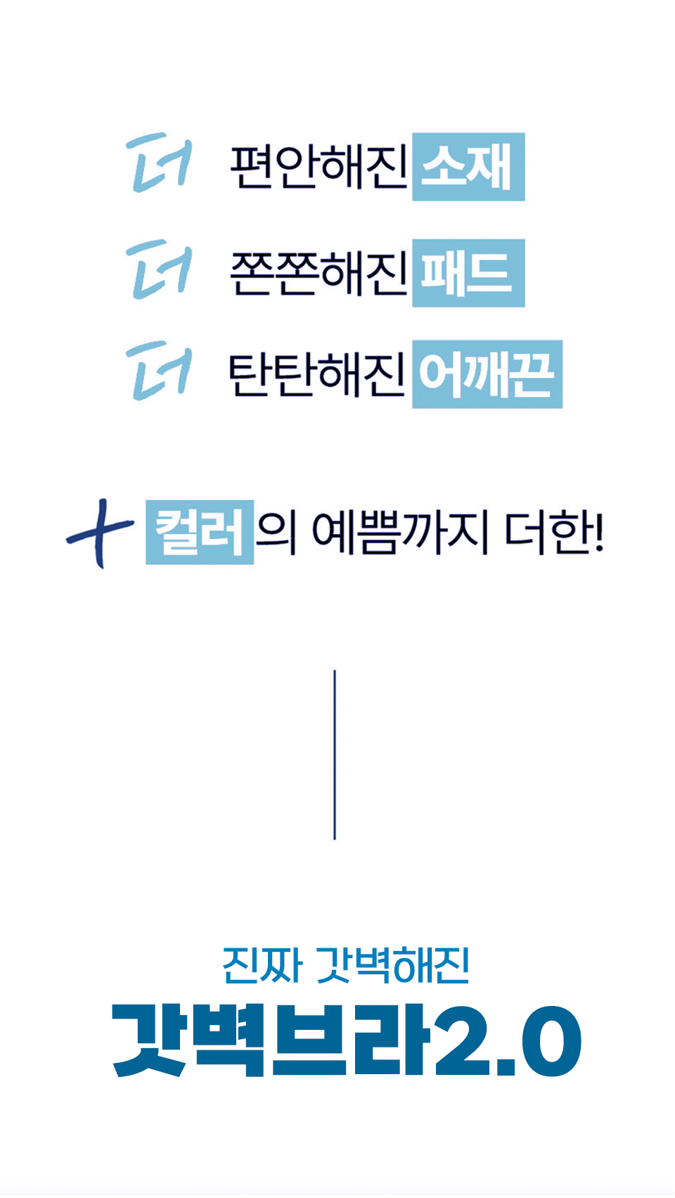 드디어 '갓벽브라팬티'에 대한 1년간의 수많은 사용후기의 조언과 의견을 반영하고 수십 번의 추가 샘플링과 핏팅을 통해 우린 업그레이드된 '갓벽브라팬티 2.0'를 자신있게 서포터님들에게 선보이게 되었습니다.