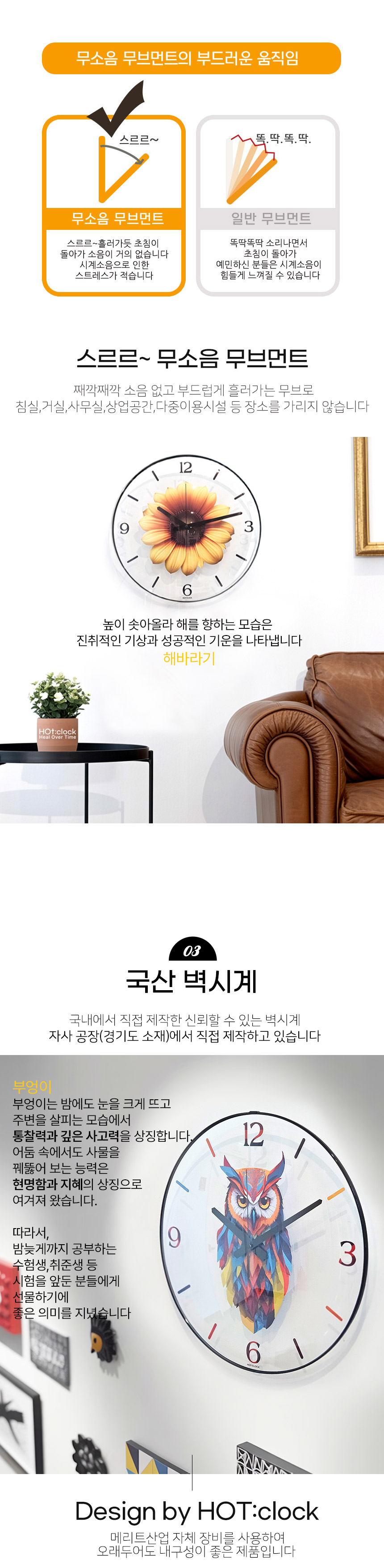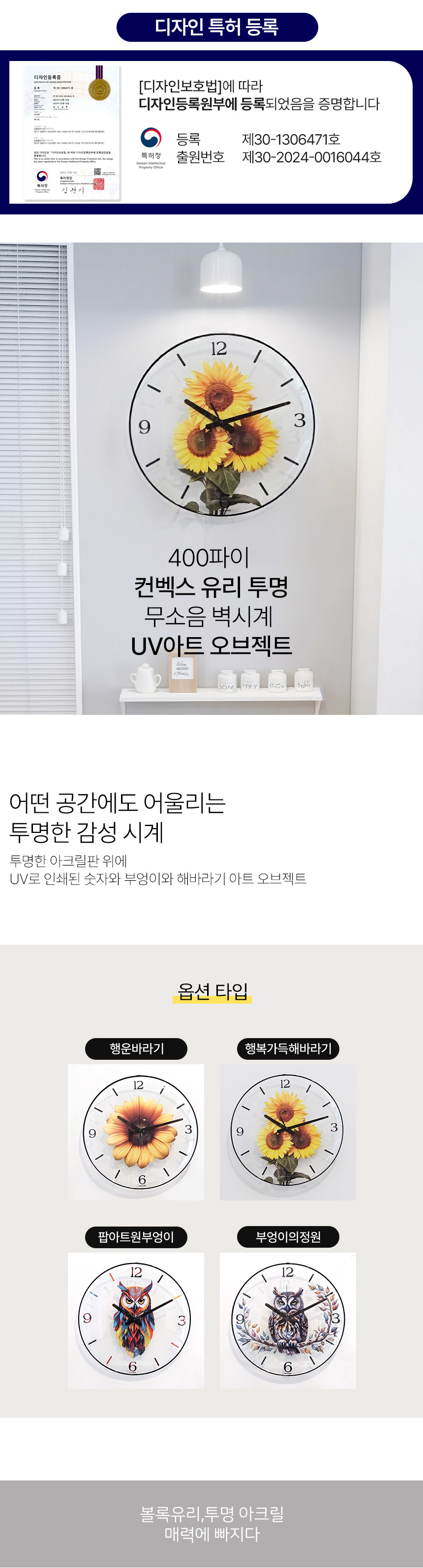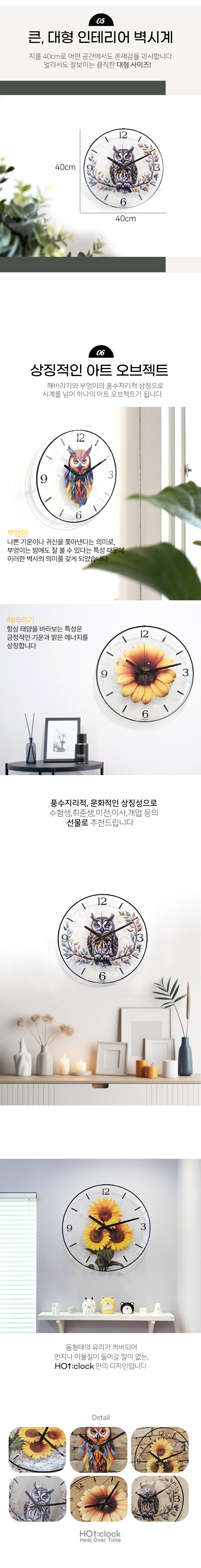 - 선물용으로 좋은 해바라기와 부엉이를 투명 벽시계에 담았습니다