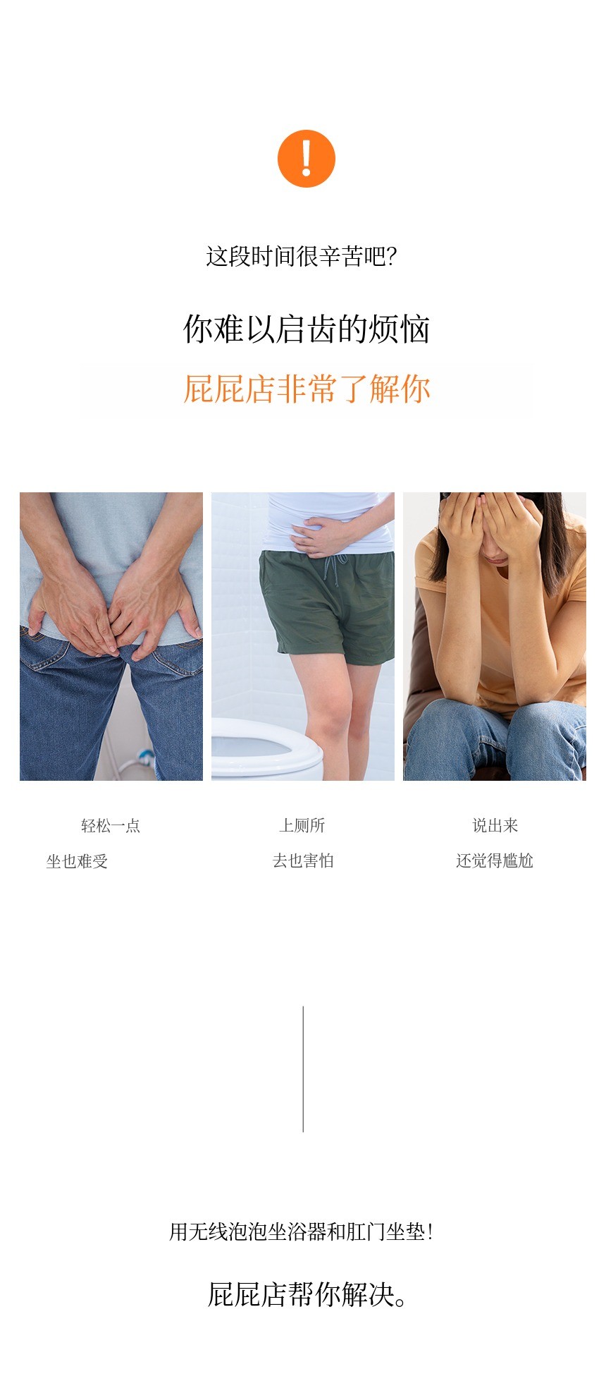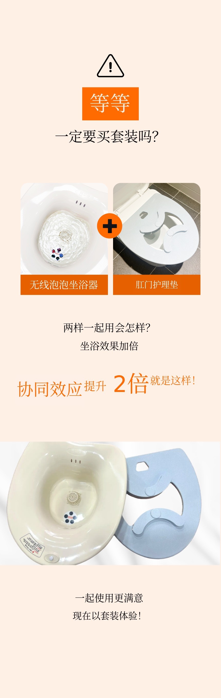 1. 🛁 无线气泡坐浴器与肛门垫套装 - 每日10分钟舒适肛门护理体验 2. 💡 针对敏感部位的护理方案 - 科学设计与无线便捷有效缓解不适 3. 🎁 独家众筹套装优惠 - 套装购买坐浴效果加倍