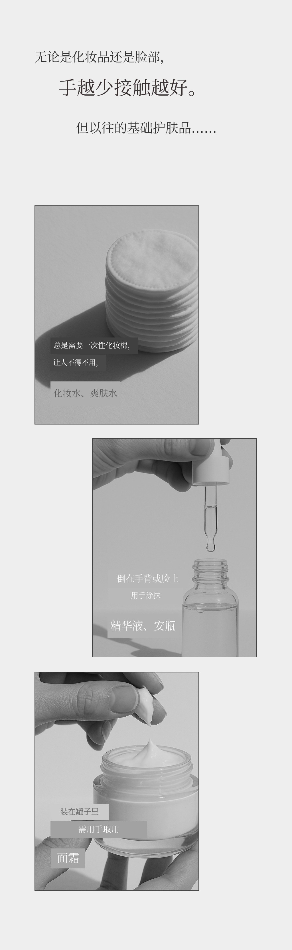 A1. 并非必须。每款产品单独使用也能实现爽肤+精华+安瓶的效果。三款搭配使用可享受改善肤色、补水舒缓、提升弹力的协同效果。请根据您的肌肤问题和生活方式自由选择使用。