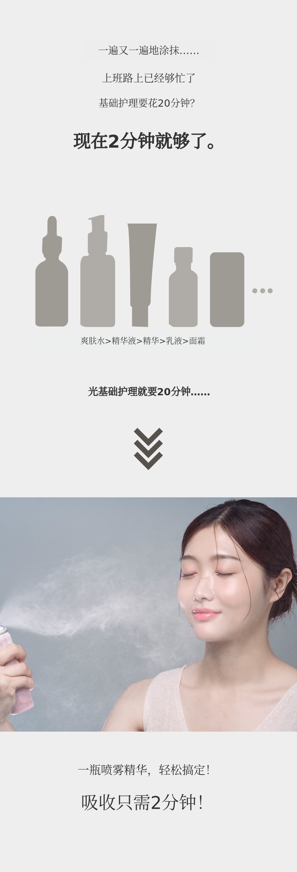 A3. 早晨可用美白喷雾,晚上用补水舒缓喷雾镇静肌肤,第三款胶原喷雾可在一天中任何需要提升弹力时使用。美白和胶原喷雾建议作为护肤第一步或妆前使用效果更佳,补水舒缓喷雾可像睡眠面膜一样使用,效果更好。