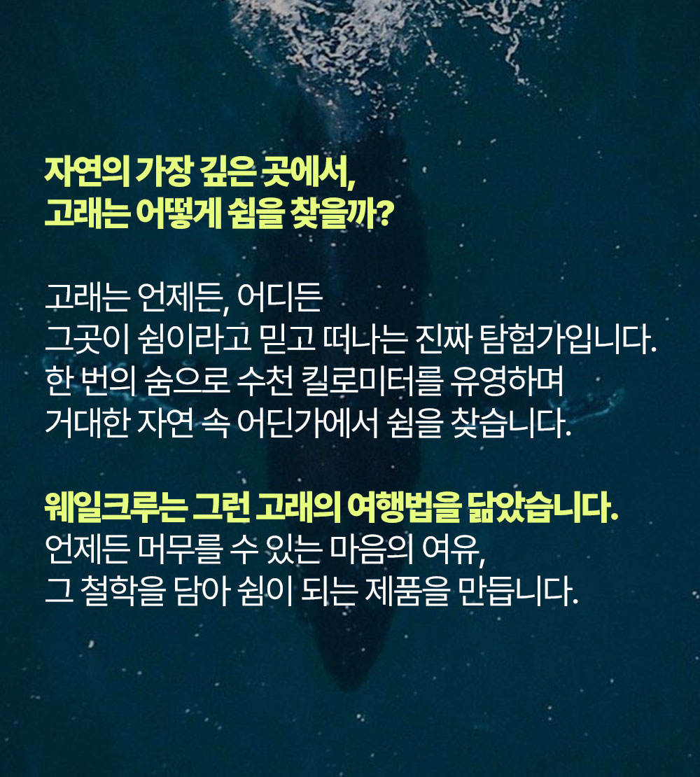 웨일크루는 단순히 제품을 판매하는 것이 아니라, 이 여정에 공감하는 서포터들과 함께 완성해나가고 싶었습니다.