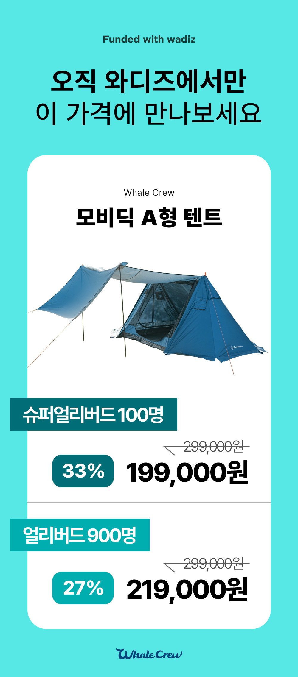 “진짜 필요한 것만 담자”는 철학으로, 캠핑의 무거움을 줄이고 쉼의 본질에 집중한 웨일크루의 제품들을 이제 와디즈에서 소개합니다.